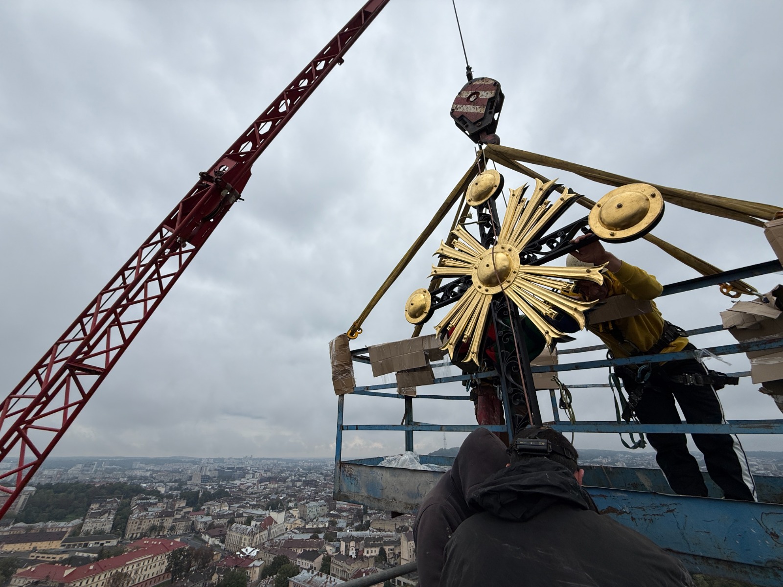 Після кількох місяців кропітких робіт на куполі Собору Святого Юра знову сяє відреставрований історичний хрест. Ця подія стала особливою не лише для міста, а й для всієї духовної спільноти. Вперше з 1870 року, коли хрест був встановлений, його довелося зняти для реставрації. Через пошкодження святиня потребувала термінового втручання. Відновлення стало можливим завдяки фінансовій підтримці мецената В’ячеслава Чепіля, який повністю профінансував реставраційні роботи. Хрест було освячено митрополитом Ігорем, а відновлення завершили ще до свята Покрови. Завдяки уважній підтримці та небайдужості представників міста процес вдалося успішно реалізувати, і тепер відреставрований хрест знову прикрашає купол однієї з головних святинь Львова. «Ми дуже задоволені, що проблему було виявлено фахівцями своєчасно, а ремонт завершився швидше, ніж до кінця року, як спершу прогнозувалося. Відтепер найвидніший і найвідоміший храм нашого міста буде знову з хрестом — але вже відреставрованим», — зазначив Євген Бойко. Настоятель собору Святого Юра, отець Роман Кравчик, повідомив, що оригінальні промені хреста збережено та виставлено для огляду у храмі. Загальна вартість реставрації склала понад 200 тисяч гривень, і всі витрати покрили благодійники. Під час монтажу в оновлений хрест заклали капсулу часу з інформацією про його історію, іменами та фото людей, які долучилися до відновлення. Висота хреста — 2,73 метра, вага — близько 70 кг. Особливу роль в організації процесу відіграла Маріанна Мороз, яка протягом усього часу перебувала на об’єкті й з великою відповідальністю координувала всі етапи робіт. Демонтаж хреста здійснили Тарас Ковальчук та Анатолій Вакулік, реставраційні роботи виконували Юрій Миколаїшин з командою, головним архітектором проєкту став Віталій Могитич, а дослідження та реставраційний звіт підготував Василь Карпів. Слово В’ячеслава Чепіля: «Це неабияка честь для моєї сім’ї — виступити благодійником у такій величній справі. Особливу подяку хочу висловити Артуру Натіну, Павлу Лозовому та Ігору Дропі за допомогу в організації. Без цих людей ми б не змогли втілити в життя цю благородну і духовно важливу справу. Також щира вдячність майстрам, чиї руки монтували хрест на такій висоті — друзі, ви найкращі! Дякую кожному, хто долучився. Ця справа — символ віри, сили і єдності Львова». Відновлення хреста на Соборі Святого Юра — це не лише реставрація історичної пам’ятки, а й приклад спільної праці духовенства, міста, майстрів і меценатів. Ця подія — символ єдності громади, віри та любові до Львова, що надихає творити добрі справи заради майбутніх поколінь.