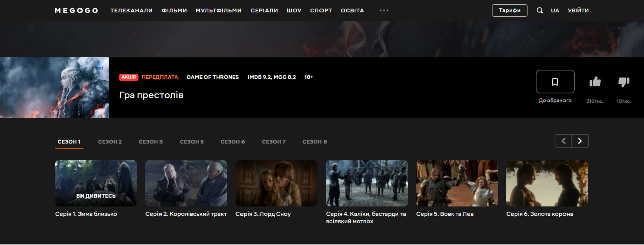 Українські стрімінгові платформи почали прибирати зі своїх каталогів популярні фільми та серіали. В онлайн-кінотеатрах зникли такі популярні проєкти, як четвертий сезон "Гри престолів", "Тенет", третій сезон "Білого лотоса" та "Крейвен". Чому стрімінги виділяють “Гру престолів” Стрімінгові платформи України розпочали чистити свої каталоги від проєктів, у яких брав участь російський актор Юрій Колокольніков. Це рішення ухвалили на виконання вимоги Міністерства культури, яке ще 21 серпня внесло артиста до списку осіб, чия діяльність підпадає під обмеження згідно із законом "Про кінематографію". Ініціатором цього виступила Служба безпеки України. Причиною стали публічні висловлювання актора, які підтримували кремлівські наративи, а також його участь у фільмах, які фінансувалися з державного бюджету Росії. Попри відсутність чітких заяв про війну, актор продовжував працювати в російській індустрії після 2022 року та паралельно брав участь у західних проєктах. Своєю чергою, Державне агентство України з питань кіно повідомило, що надіслало приписи дистриб’юторам і медіагрупам щодо вилучення контенту з ефіру та бібліотек. Крім того, Держкіно веде перемовини з міжнародними компаніями, щоб обмежити доступ до проєктів із Колокольніковим на глобальних стрімінгах. Які серіали та фільми зняли з українських платформ Після появи Колокольнікова у "чорному списку" українські стрімінгові сервіси – Megogo, Київстар ТБ, HBO Max – почали вилучати контент із його участю. Тепер українські глядачі не зможуть переглянути: 4 сезон "Гри престолів"; "Тенет" режисера Крістофера Нолана; "Білий лотос" (3 сезон); "Крейвен" – супергеройський екшн із всесвіту Marvel. Під час спроби відкрити ці фільми користувачі отримують повідомлення: “Цей контент не доступний для перегляду на території України”. Таке попередження з’являється, зокрема, при спробі переглянути 4 сезон “Гри престолів” на платформі Київстар ТБ. Натомість на Megogo усі сезони серіалу залишаються у доступі – окрім четвертого, який зник із каталогу зовсім. Хто такий Юрій Колокольніков Юрій Колокольніков – російський актор, який має громадянства Росії та Канади. Він відомий за ролями у "Грі престолів", "Тенеті" та пригодницькому фільмі "Чарівник Смарагдового міста". Попри успішну кар’єру у західному кіно, актор продовжив зніматися в російських стрічках. У 2024 році він зіграв головну роль у фільмі "Останній Ронін", знятому студією "Централ Партнершип", що належить медіахолдингу "Газпром-Медіа". Колокольніков жодного разу не висловив позицію щодо війни в Україні, що можна трактувати як мовчазну підтримку агресора.