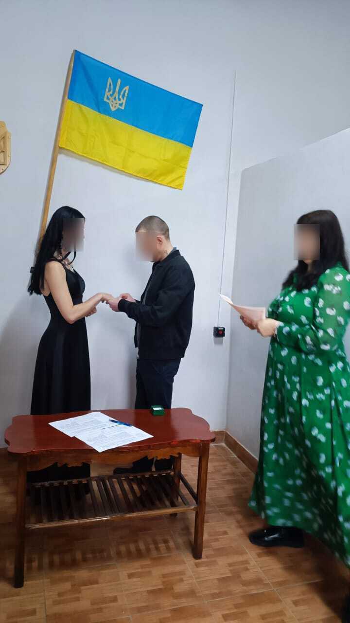 У середу, 1 жовтня у державній установі “Львівська установа виконання покарань №19” відбулася реєстрація шлюбу між чоловіком, який перебуває під вартою, та громадянкою. Шлюб зареєстрували у виправній колонії. Про це у п’ятницю, 3 жовтня, повідомили у Львівській установі виконання покарань №19. Шлюб реєстрували у виправній колонії На фото видно, що наречена одягнута у чорну сукню. Під час реєстрації шлюбу молодята обмінялися обручками і у присутності представника відділу державної реєстрації актів цивільного стану підписали свідоцтво про одруження. “Ця подія є прикладом того, що справжня любов не знає меж і не зникає через життєві випробування. Вона — про відданість, взаємність і силу бути поруч у будь-яких обставинах”, — написали у виправній колонії. Працівники колонії побажали новоствореній родині миру, довіри та щасливих моментів у спільному житті.