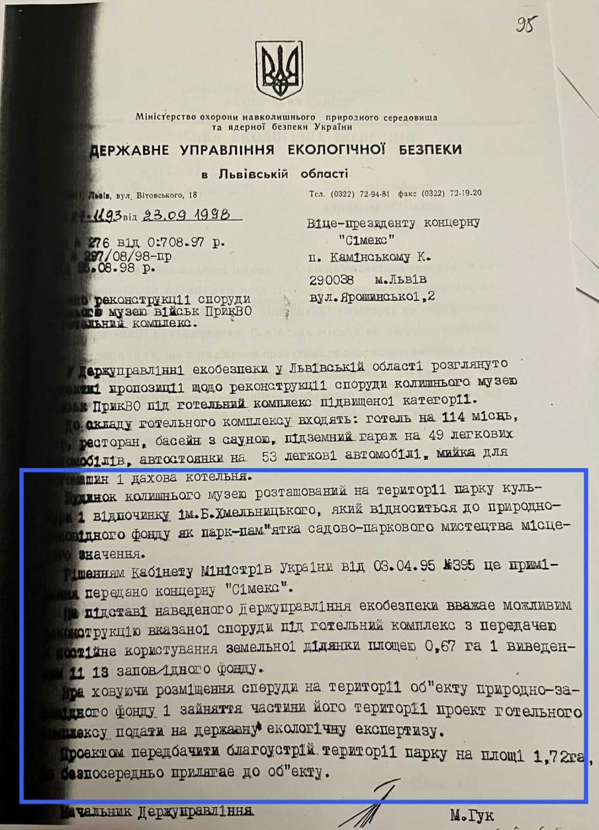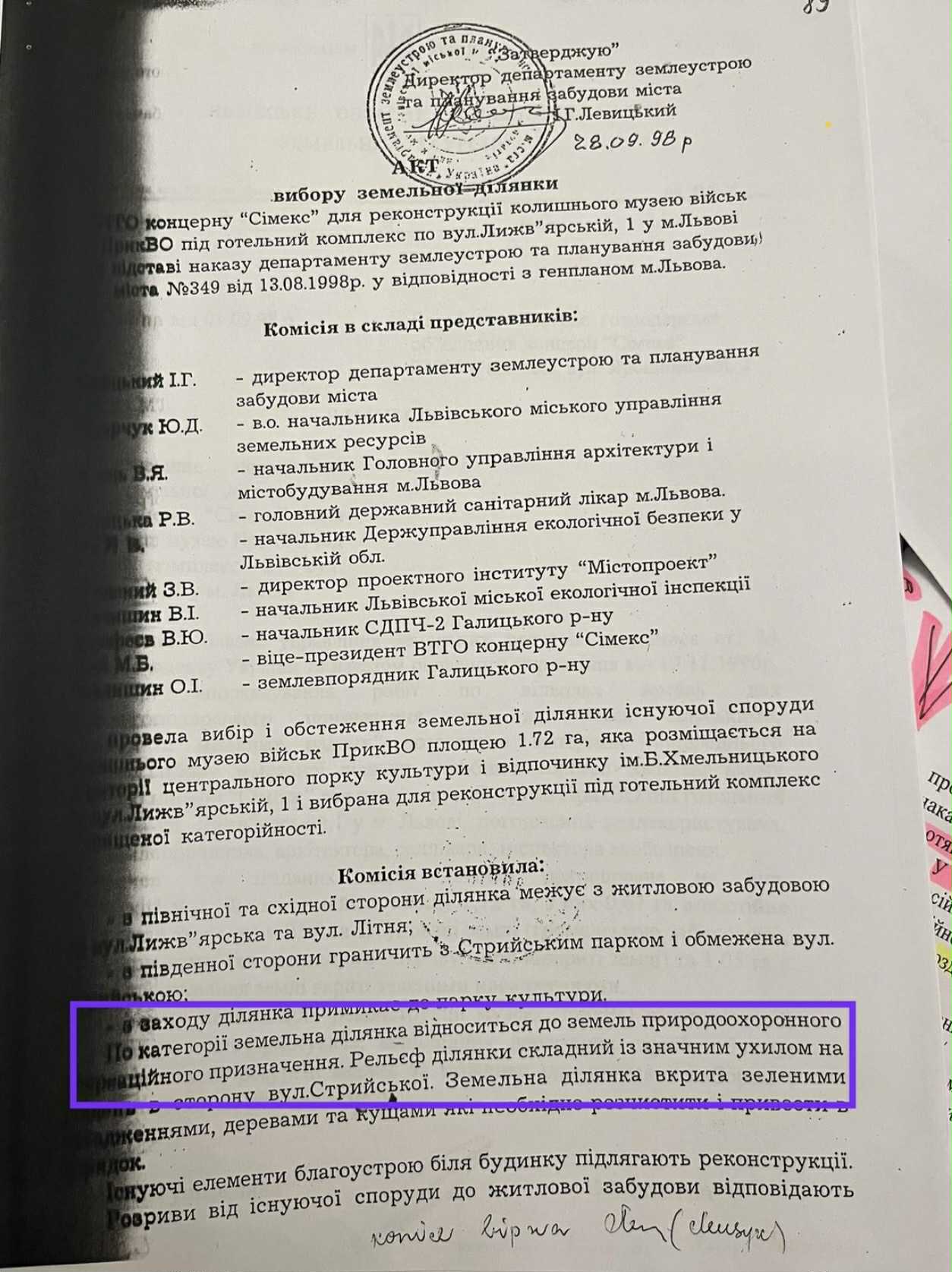 На вулиці Лижв’ярській, 1 у Львові будується новий готельний комплекс з апарт-готелями, паркінгами та інфраструктурою. Проєкт реалізує ТзОВ “Парк Спейс”, 90% якого належить будівельній компанії Avalon. Але є одне але — ділянка, на якій ведуться роботи, розташована в межах Парку культури імені Богдана Хмельницького, що входить до природно-заповідного фонду та охороняється ЮНЕСКО. Ба більше — колись тут був міський та військовий цвинтар, де ховали жертв епідемій і вояків, а також музей історії військ Прикарпатського військового округу. Попри юридичні заборони й моральні питання, Львівська міська рада продала землю приватній компанії, а забудовник уже зніс стару будівлю музею та розпочав на його місці роботи. Історія ділянки: від кладовища до готелю Історія цієї землі починається ще у 1823 році. Тоді, після закриття “старого” Стрийського цвинтаря, міська влада відкрила новий некрополь у верхній частині вулиці Стрийської — праворуч від дороги. З часом він розширився й охопив територію між сучасними вулицями Стрийською, Героїв Майдану та Лижв’ярською. Як розповів LVIV.MEDIA історик Іван Сварник, на цьому кладовищі ховали місцевих мешканців, пацієнтів психіатричної лікарні та в’язнів. “Оскільки туди належали шпиталі – міський і військовий – то досить багато поховань було людей військових, померлих від епідемій. Зокрема, під час Першої світової війни. Тобто досить було чумних, холерних поховань. Ці поховання здійснювалися окремо – їх ховали у траншеях і зверху засипали вапном”, — зазначив історик. На цьому місці розташовувався військовий цвинтар, який у 1954 році знищили, коли почали створювати Парк культури імені Богдана Хмельницького. “Жодних ексгумацій в той момент не відбувалося”, — додав Іван Сварник. У 1965 році на ділянці відкрили Музей історії військ Прикарпатського військового округу. У 1995 через фінансові труднощі, його продали концерну “Сімекс”, який планував облаштувати на цьому ж місці готель. Під час реконструкції роботи довелося зупинити — робітники натрапили на людські рештки. З парку у приватну власність Вісім років тому у Львівській мерії засідала архітектурно-містобудівна рада. Того дня розглядався проєкт реконструкції того ж недобудованого компанією “Сімекс” готелю на вулиці Лижв’ярській, на землі, яка входить до природно-заповідного фонду і мала б бути під охороною. Тоді, у 2017 році, з’явився інвестор — ТзОВ “Апартготель”, який захотів надбудувати на старій “коробці” кілька поверхів і облаштувати апарт-готель. Тодішній керівник управління архітектури Львова Юліан Чаплінський та головний архітектор ДІПМ “Містопроект” Юрій Столяров під час містобудівної ради заявляли, що на місці недобудови може з’явитися висотний готель міжнародної мережі Hilton. Також тоді (вже теперішній головний архітектор Львова) Антон Коломєйцев, попри ризики, наводив приклад Відня, де Hilton стоїть ближче до центру, й підтримав ідею будівництва такого типу готелю у Львові — поруч із парком і в межах колишнього цвинтаря. Натомість, як йдеться у протоколі засідання ради, колишня начальниця управління охорони історичного середовища Львівської міської ради Лілія Онищенко наголошувала, що ділянка належить до парку та колишнього кладовища, тому потрібні погодження Мінкульту і ЮНЕСКО: “Висловила сумнів з приводу будівництва на тер