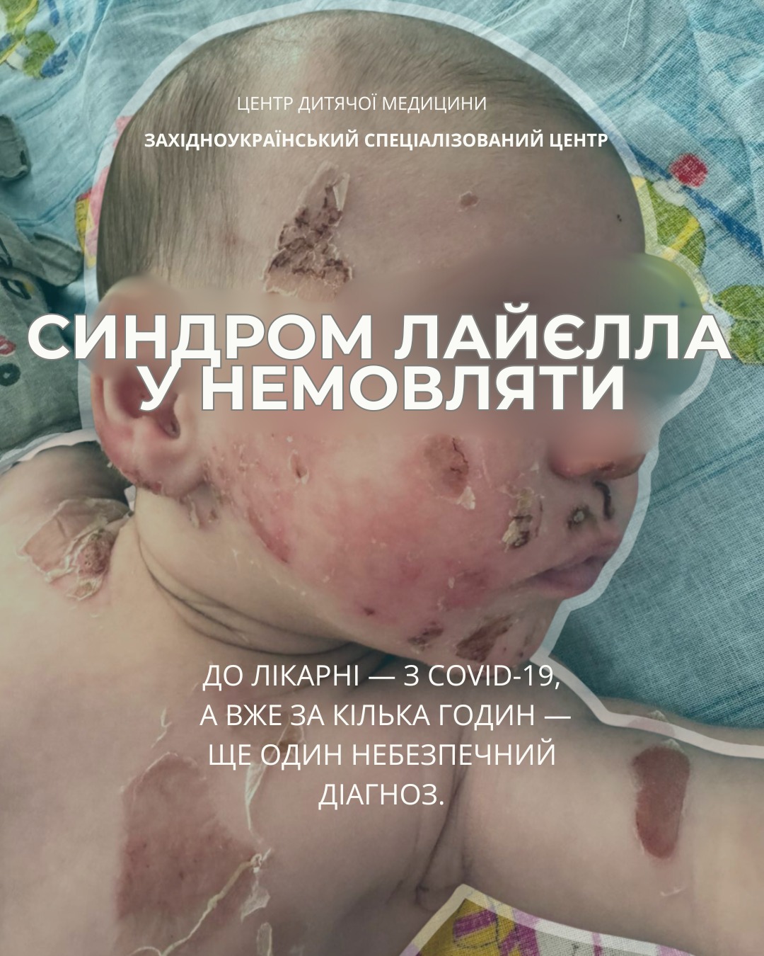 У Львові немовля, якому було лише 28 днів, госпіталізували з діагнозом COVID-19. Згодом лікарі встановили ще один небезпечний діагноз — токсичний епідермальний некроліз. Про це 7 жовтня повідомили у Центрі Дитячої Медицини. Дитині робили спеціальні пов'язки зі срібла Спочатку дитину привезли до лікарні з симптомами COVID-19, однак за деякий час медики помітили ознаки ще одного серйозного захворювання — токсичного епідермального некролізу (ТЕН), який є одним з найнебезпечніших уражень шкіри. Медики Центру дитячої медицини одразу скерували немовля до спеціалізованого відділення, де після ретельного обстеження було встановлено точний діагноз. «Водночас спільно з реаніматологами робили дитині пов'язки зі срібла та спеціальні компреси, щоб зупинити прогресування хвороби та уникнути інфікування великих ділянок шкіри», — розповідає імунологиня та дерматологиня Соломія Тимчишин. Стан малюка стабілізувався. Наразі дитину виписали додому. Що таке токсичний епідермальний некроліз До слова, Синдром Лайєлла, або токсичний епідермальний некроліз (ТЕН), — це рідкісне і небезпечне для життя захворювання, яке спричиняє масивне відмирання шкіри та слизових оболонок з утворенням великих пухирів. ТЕН часто виникає через інфекції або прийом ліків і вражає більше 30% поверхні тіла. Захворювання може призвести до серйозних ускладнень, таких як інфекції та сепсис, а летальність становить 30-70%.