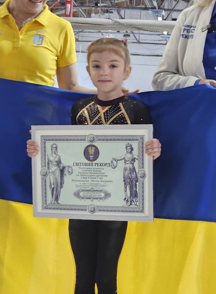 Шестирічна львів’янка Регіна Абрамова встановила світовий рекорд, виконавши 223 підйоми-перевороти поспіль. Її результат перевищив попереднє досягнення у 80 повторів майже утричі. Про це повідомили журналісти Еспресо.захід Фіксацію рекорду провели представники Національного реєстру рекордів України, які визнали досягнення Регіни новим світовим рекордом у її віковій категорії. Нагадаємо, що це не перший рекорд юної спортсменки. В серпні цього року вона встановила рекорд України за кількістю підйомів з переворотом на перекладині. Дівчинка змогла виконати вправу 55 разів. А до того стала наймолодшою, хто самостійно піднявся на Говерлу.