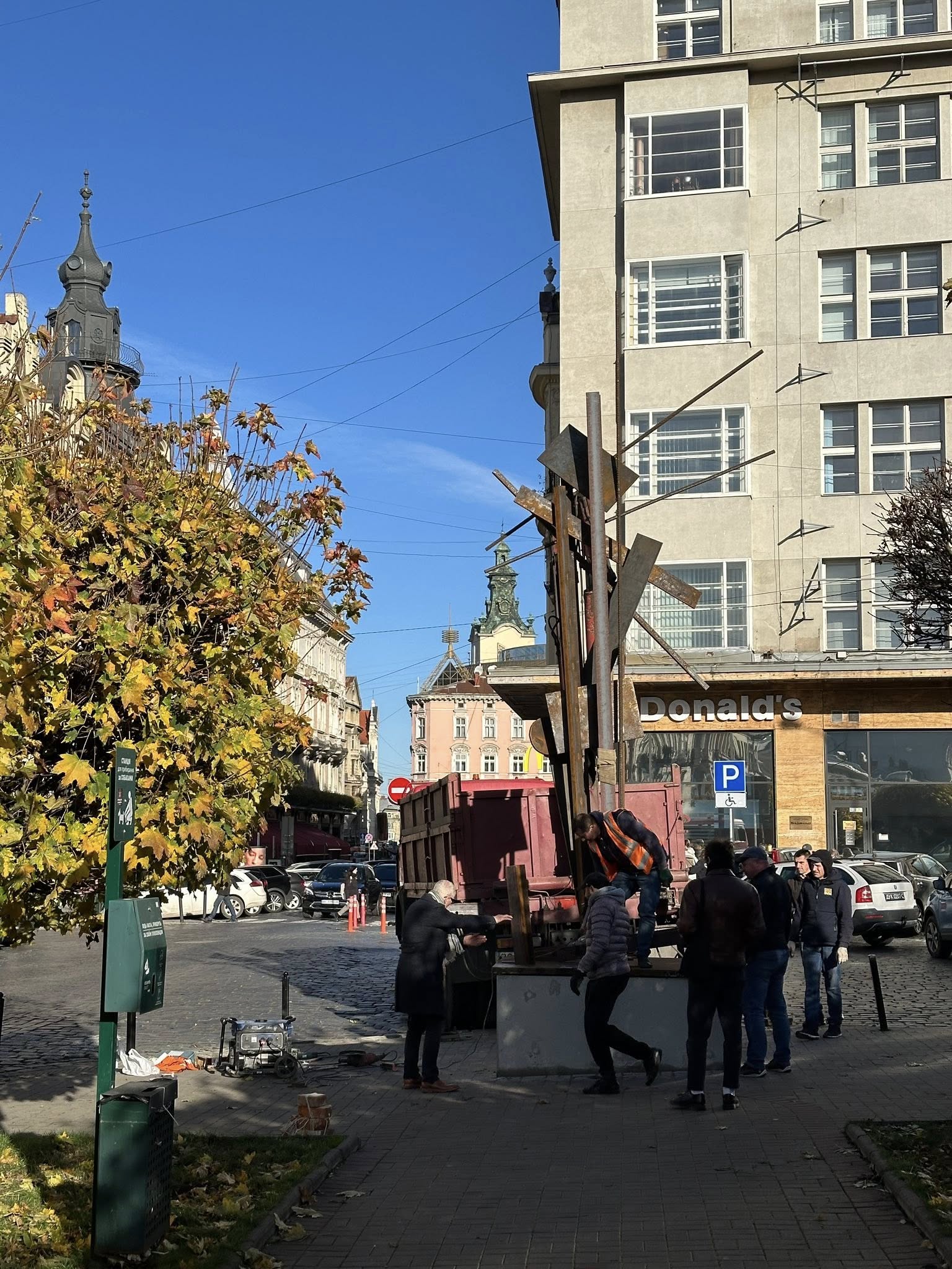 В центрі Львова на проспекті Тараса Шевченка тимчасово встановили мистецьку інсталяцію “Давид”. Автором скульптури є німець Георг Вольф. Про це повідомили у Львівській міській раді у п’ятницю, 31 жовтня. Скульптура “Давид” є частиною Тижня скульптури у Львові, який цього року проходить під темою “Діалоги”. Коли подія завершиться, інсталяцію перенесуть на іншу локацію міста. Про що скульптура “Давид” у Львові “Давид” — борець за свободу, символічна фігура, що наважується виступити проти велетня і перемагає його. Давид уособлює мужність і рішучість. Саме ці якості, разом із гнучкістю “меншого” супротивника, дозволяють перемогти повільного гіганта. Скульптура спрямована вгору з легким розширенням, що передає динаміку визволення та створює гру світла й тіні, посилюючи ефект відкритості. Сталь автор залишив нефарбованою, схильною до окиснення. Так, іржа — це оксид заліза, саме він надає крові її колір. “Життя іноді народжується у шорсткості, в неспокої, у відкритості до стихій. Світло, що проходить крізь отвори конструкції, підсилює відчуття руху й дихання”, — зазначили в управлінні культури. Раніше “Давид” стояв на площі біля Театру ляльок. Автор роботи особисто був присутній, коли його інсталяцію переміщували на проспект “Свободи”. Про Тиждень скульптури у Львові Тиждень скульптури у Львові — це мистецький фестиваль, який проводять з 2022 року і який перетворює місто на сцену для сучасної скульптури, діалогу між мистецтвом, містом і людьми. У 2025 році тема фестивалю — “Діалоги”. Цьогорічні події та інсталяції відбуваються на понад 10 локаціях міста — серед них Стрийський парк, площа Митна, площа Петрушевича, площа біля Оперного театру, НУ “Львівська політехніка”, Jam Factory, Шевченківський гай, Театр Курбаса, простір МОНО та інші. У фестивалі беруть участь понад 20 українських та іноземних скульпторів, серед них: Денис Шиманський, Володимир Семків, Іван Брезвин, Ярослав Мотика, Руслан Тремба, Сергій Махно, Георг Вольф (Німеччина), Миколас Саукос (Литва) та інші.