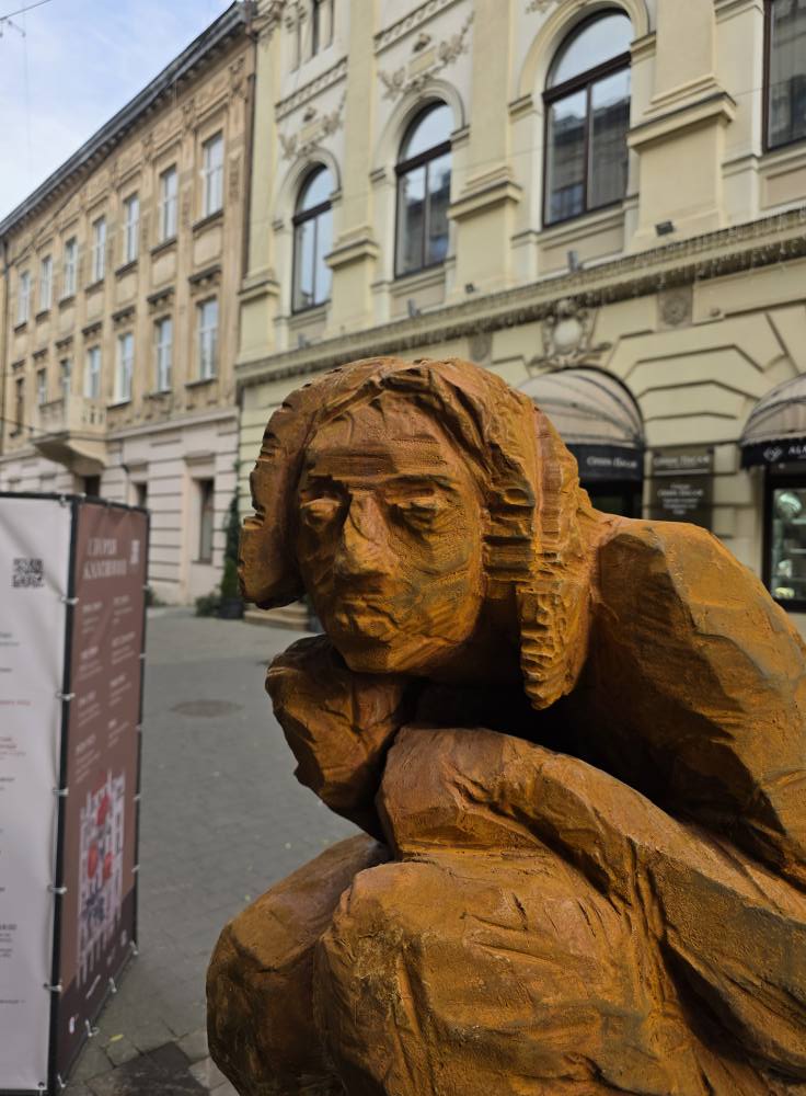 У вівторок, 3 листопада, у Львові навпроти входу до театру Леся Курбаса тимчасово встановили скульптуру “Зажата” Володимира Семківа. Мистецький об’єкт розмістили в рамках цьогорічного Тижня скульптури. Про це повідомили у вівторок, 4 листопада, в управлінні культури Львівської міськради. “Зажата” виконана з чавуну Спершу “Зажата” була виготовлена з дерева й представлена на виставці “Нова львівська скульптура”, яка у 2022 році започаткувала фестиваль “Львівський тиждень скульптури”. Нова ж версія роботи зроблена з чавуну. З часом скульптура продовжить ржавіти, а її поверхня стікатиме по металевому подіуму. “Це робота 2020 року — моя рефлексія на тодішній стан пандемії COVID-19. Це відчуття внутрішнього стискання, напруги, затиснутості, яке, на мою думку, дуже точно відгукується і сьогодні. Ковід минув, почалася війна, але внутрішній стан нашого суспільства — ніби залишився тим самим. Так я його відчуваю” — зазначив автор скульптури Володимир Семків. Про Тиждень скульптури у Львові Тиждень скульптури у Львові — це мистецький фестиваль, який проводять з 2022 року і який перетворює місто на сцену для сучасної скульптури, діалогу між мистецтвом, містом і людьми. У 2025 році тема фестивалю — “Діалоги”. Цьогорічні події та інсталяції відбуваються на понад 10 локаціях міста — серед них Стрийський парк, площа Митна, площа Петрушевича, площа біля Оперного театру, НУ “Львівська політехніка”, Jam Factory, Шевченківський гай, Театр Курбаса, простір МОНО та інші. У фестивалі беруть участь понад 20 українських та іноземних скульпторів, серед них: Денис Шиманський, Володимир Семків, Іван Брезвин, Ярослав Мотика, Руслан Тремба, Сергій Махно, Георг Вольф (Німеччина), Миколас Саукос (Литва) та інші. Нагадаємо, раніше у Шевченківському гаю в межах “Тижня скульптури” встановили семиметрову скульптуру з глини “Дідо Небокрай”, також у центрі міста, на проспекті Тараса Шевченка, тимчасово встановили мистецьку інсталяцію “Давид”.