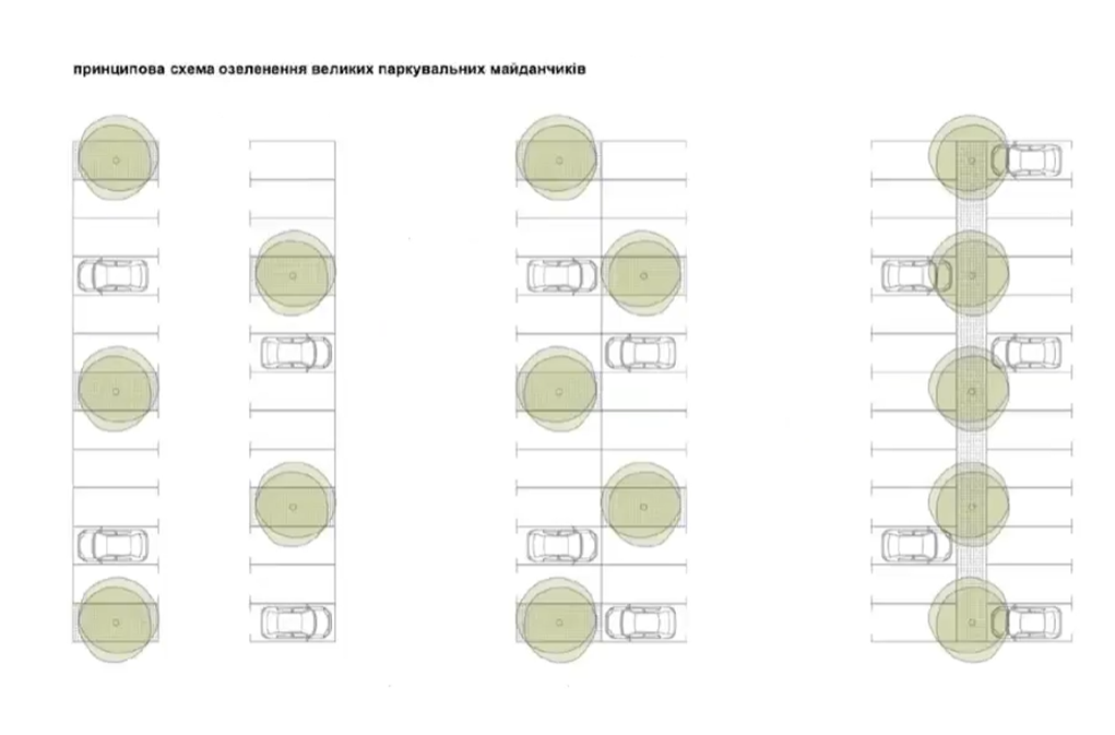 У Львові висаджуватимуть дерева на паркувальних майданчиках. Озеленення має зменшити нагрів поверхні на 15°C і зробити простір комфортнішим для людей. Відповідне рішення прийняли під час засідання виконавчого комітету Львівської міськради у п’ятницю, 7 листопада. Висаджуватимуть дерева, які матимуть висоту не менше 15 метрів За даними міськради, суцільне асфальтоване покриття на парковках під час спеки нагрівається на 15°C вище, ніж озеленені ділянки. Висаджені дерева створюють тінь, знижують температуру поверхні та покращують мікроклімат. Що передбачає рішення: під час будівництва або ремонту майданчиків обов’язково висаджуватимуть повнорозмірні дерева з потенційною висотою не менше 15 метрів у дорослому віці; для перпендикулярного паркування — 1 дерево на кожні 5 паркомісць; для паралельного — 1 дерево на кожні 3 паркомісця; вимоги стосуються як нових, так і вже існуючих стоянок — їхні балансоутримувачі також мають провести озеленення. “Будемо починати з муніципальних об’єктів, а так само будемо звертатися для того, щоб у приватних об’єктах так само впроваджували таке озеленення”, — сказав головний архітектор міста Львова департаменту архітектури та просторового розвитку Антон Коломєйцев. Проєкти озеленення погоджуватимуть із департаментом архітектури, департаментом міської мобільності та управлінням екології.