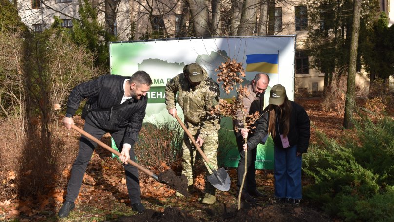 У ботанічному саду лісотехнічного університету посадили мільярдний дуб, як «символ стійкості та незламності українського народу», повідомив Департамент екології та природних ресурсів Львівської ОВА. На Львівщині висадили найбільше сіянців З метою збільшення лісистості країни, у рамках програми президента Володимира Зеленського “Зелена країна”, висаджено мільярд дерев. Земля Львівщини за 4 роки прийняла понад 51 мільйон сіянців — це найбільша кількість серед регіонів, в межах філії “Карпатський лісовий офіс” ДП “Ліси України”. Акція висадження мільярдного дерева відбулася одночасно по всій Україні. У Львові до заходу долучилися представники місцевих громад, військові та мешканці міста. Директор департаменту екології та природних ресурсів Львівської ОВА Володимир Корда підкреслив, що символічним у цьому заході є те, що цей дуб висаджено саме на території ботанічного саду Національного лісотехнічного університету України — найстарішого лісівничого вищого навчального закладу України.