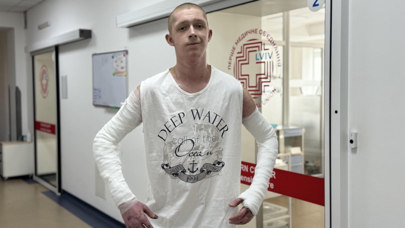 У Львові лікарі врятували 19-річного хлопця, який під час робіт на даху отримав опіки 60% тіла. Медикам довелося пересадити йому свинячу шкіру та проводити кілька операцій, аби врятувати життя. Про це 27 листопада повідомили у пресслужбі Першого ТМО. Хлопець тиждень був в реанімації у важкому стані Наприкінці вересня житель Житомирщини Богдан Гапій працював на підприємстві у Львівській області. Під час фарбування металевого даху хлопець облився розчинником — уайт-спіритом, а коли вирішив перекурити, його футболка спалахнула від цигарки. Це спричинило сильні опіки на 60% його тіла, в тому числі на шиї, грудях, руках та голові. Також у Богдана були пошкоджені дихальні шляхи. Швидка допомога доправила його до найближчої лікарні, а згодом хлопця перевезли до Львова, в Лікарню Святого Луки. Тут медики одразу провели складні операції з видалення некротизованих тканин та накладення спеціальних перев’язок. Медики закрили очищені рани ксеношкірою, тобто свинячою, а пізніше пересадили Богдану його власну шкіру. «Коли пацієнт поступає з більше ніж 20% опіків, то у нього вже є загроза для життя. А коли це 60% опіків, то йде дуже складна боротьба за життя. Такі пацієнти потребують негайної допомоги в спеціалізованих центрах і цілодобового спостереження за життєвими показниками», — розповідає Іван Рик, завідувач Центру термічної травми та пластичної хірургії Лікарні Святого Луки. Понад тиждень Богдан перебував у палаті інтенсивної терапії у важкому стані. Наразі стан хлопця стабільний, і він вже почав реабілітацію.