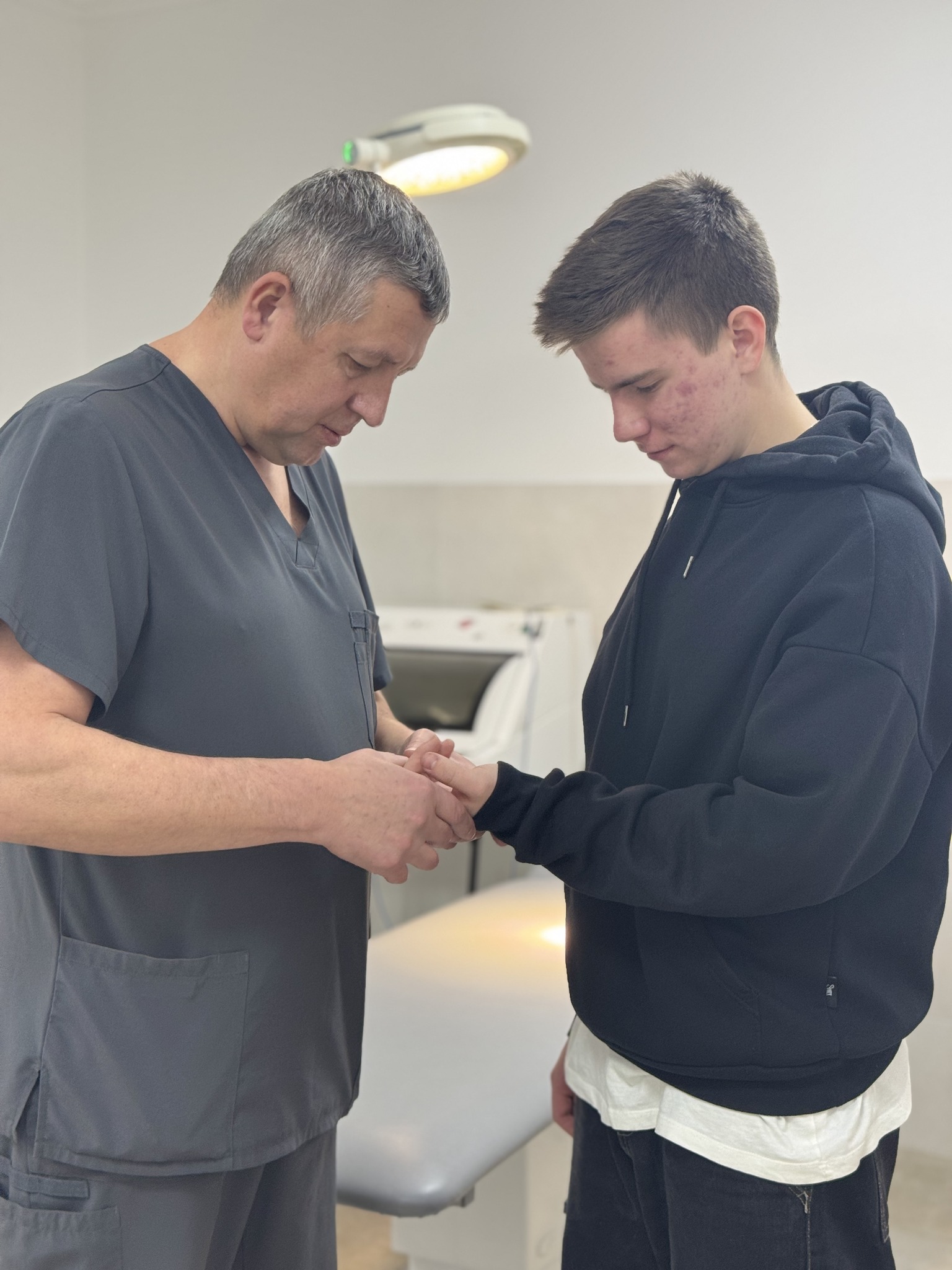 У Львові хірурги Центру дитячої медицини повернули функцію пальця 16-річному підлітку, який місяць тому глибоко порізав руку, допомагаючи батькам шинкувати капусту. Про це повідомили у Центрі дитячої медицини 5 грудня. За словами медиків, хлопець вчасно звернувся по допомогу, завдяки чому вдалося уникнути складніших втручань. Школяр травмувався ножем 16-річний хлопець допомагав мамі готувати капусту, коли ніж зісковзнув і розсік четвертий палець. Болю майже не було, але палець перестав згинатися, що насторожило родину. У медзакладі встановили ушкодження і поверхневого, і глибокого згинача в другій зоні кисті — складній для відновлення ділянці. «У Володі був ушкоджений і поверхневий, і глибокий згинач четвертого пальця у так званій другій зоні кисті. Саме в цій ділянці складно проводити відновлення сухожилля через анатомічні особливості. Але добре, що нерви не були травмовані і хлопець вчасно звернувся до лікарів. Хірургічне втручання минуло успішно і без ускладнень», — розповів керівник Клініки спеціалізованої хірургії Центру Богдан Романишин. Медики додають, що порізи ножами та склом у дітей трапляються часто, і своєчасне звернення є вирішальним — після тритижневого проміжку від травми доводиться проводити складні реконструктивні операції. Реабілітація триває Володя — одинадцятикласник і готується до НМТ. Хлопець каже, що «пощастило травмувати ліву руку», бо це не заважає навчанню. Хлопець продовжує активну реабілітацію. Попереду ще кілька тижнів відновлення, але він налаштований оптимістично, адже хоче повністю відновити функцію руки перед випускними іспитами.