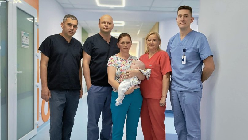 Львівські нейрохірурги Дитячої Лікарні Святого Миколая врятували немовля з нетиповою гідроцефалією, більш відомою як водянка мозку. Причиною стала арахноїдальна кіста, яка створювала величезний тиск на обидві півкулі головного мозку, відгинаючи їх у різні сторони. Про це повідомила 10 грудня у Дитячій лікарні Святого Миколая. Як розповіли у лікарні, Олені з Івано-Франківщини на 22-му тижні вагітності тамтешні лікарі порекомендували перервати вагітність через вроджену патологію немовляти — гідроцефалію. З надією на лікування нейрохірургічними методами, жінка народила і тоді звернулася до медиків львівської лікарні, які змогли успішно прооперували немовля. Нейрохірурги лікарні Святого Миколая виконали оперативне втручання — ендоскопічну фенестрацію, тобто з’єднання всіх порожнин арахноїдальної кісти з фізіологічними порожнинами головного мозку. Після успішної операції голова дитини щодня зменшувалася на понад пів сантиметра. Очі, що були запавші, піднялися — дитина почала слідкувати поглядом. "Насправді гідроцефалія досить поширене захворювання серед дітей. А наша команда хірургів володіє повністю всіма сучасними методами лікування гідроцефалії. З нашого досвіду більшість дітей, близько 70-80%, після лікування можна сказати, що забувають про нас, як про нейрохірургів. Звісно вони в нас є під спостереженням, але в цілому ці діти нічим не відрізняються від інших. Можливо на початку у них є дещо більша голова, але в силу розвитку й росту дитини, воно все з часом нівелюється і діти живуть повноцінно і без жодних проблем", — розповідає завідувач нейрохірургічного відділення Тарас Микитин.