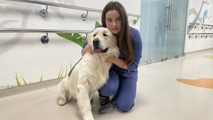 Золотистий ретривер Альто — новий чотирилапий помічник маленьких пацієнтів Лікарні Святого Миколая Першого медоб’єднання Львова. Псові півтора року: він народився в Одесі, прожив там перший рік життя, а згодом переїхав до Львова та розпочав навчання у кінологічному центрі. Про це розповіли у Львівській міськраді у неділю, 21 грудня. Щоб працювати з дітьми у медичному закладі, Альто пройшов тривалу підготовку за американською програмою. Кажуть, за характером він дуже спокійний і відкритий до людей, а під час занять вміє м’яко “підлаштовуватися” під емоційний стан дитини та допомагати їй заспокоїтися. «Альто неймовірний. Він дуже спокійний, добрий. І в нього є риса, яка відрізняє його від інших собак — Альто любить всіх людей. А з дітьми налагоджує особливий емоційний звʼязок», — каже каністерапевтка та господиня Альто Інна Доронюк. Графік роботи Альто у лікарні — один-два дні на тиждень. Найчастіше пухнастика залучають до занять із дітьми, які проходять реабілітацію, а також лікуються у психоневрологічному відділенні. Пацієнти кажуть: присутність собаки допомагає відволіктися від тривоги, страху та болю, а сама реабілітація стає психологічно легшою. «Навіть коли болить нога під час реабілітації, але поруч песик Альто, я забуваю про біль, заспокоююсь. І, як би важко не було, час проходить швидше», — ділиться 17-річний Ігор, який потрапив у ДТП і нині проходить реабілітацію. Під час зустрічей пес працює поруч із каністерапевткою, медиками та рідними дитини — так, щоб взаємодія була безпечною, контрольованою й максимально комфортною для пацієнта.