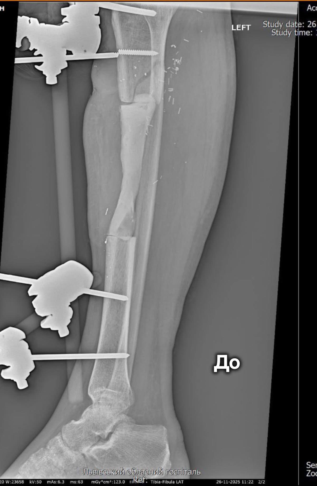 У Львівському обласному госпіталі ветеранів почали застосовувати передову хірургічну методику Маскулет для лікування складних бойових травм. За цією технологією лікарі вже провели двоетапну операцію військовослужбовцю з критичним дефектом кістки довжиною понад 12 сантиметрів. Про це 24 грудня повідомили у Львівській обласній раді. Як працює методика Маскулет Нещодавно медзаклад відвідав відомий ортопед-травматолог, голова Асоціації остеосинтезу України Олександр Ріхтер. Разом із лікарями ортопедо-травматологічного відділення він провів майстер-клас і показову операцію з використанням цієї техніки. Пацієнтом став військовослужбовець із критичним дефектом кістки — ушкодження сягало 12,5 сантиметра. У таких випадках стандартне лікування часто не дає результатів, тому медики вирішили застосувати методику Маскулет. Вона передбачає два етапи: спершу лікарі формують спеціальну «камеру» для кістки, а згодом заповнюють її кістковою тканиною та стабілізують уламки. «Техніку Маскулет нерідко називають «операцією останньої надії», адже вона дає шанс на відновлення у випадках важких вогнепальних поранень і значних кісткових втрат. Метод дозволяє уникнути тривалого використання апаратів зовнішньої фіксації та скорочує шлях пацієнта до повноцінного відновлення», — зазначають у госпіталі ветеранів. Наразі пацієнт успішно відновлюється після операцій. Попереду — курс реабілітації під наглядом команди фахівців. У госпіталі додають, що й надалі залучатимуть провідних українських та міжнародних експертів, аби впроваджувати сучасні методи лікування.