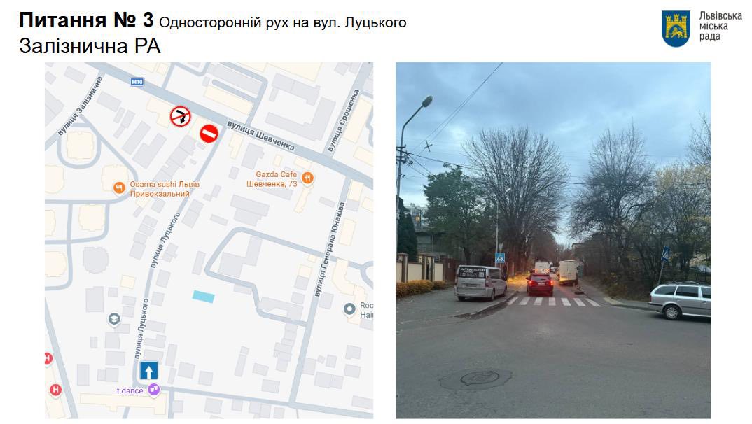 Міська комісія з безпеки дорожнього руху внесла зміни в організацію руху на декількох вулицях Львова, а також у селі Рясне-Руська. Зокрема, на одній з вулиць збережуть односторонній рух, а на іншій заборонять паркування. Про це у четвер, 12 березня, повідомив директор департаменту міської мобільності та вуличної інфраструктури Олег Забарило. Що зміниться на вулицях Львова та у селі Рясне-Руська Зокрема, на перехресті вулиць Одеська – Голубовича облаштують підвищений пішохідний перехід на одному рівні з тротуаром. Такий перехід має змусити водіїв знижувати швидкість і зробити перетин дороги безпечнішим для пішоходів. Роботи мають виконати до 10 червня. На вулиці Луцького односторонній рух, який запровадили під час реконструкції вул. Залізничної, вирішили залишити на постійній основі. Заїзд із вул. Шевченка залишиться забороненим — потрапити на цю вулицю можна буде через вул. Юнаківа та вул. Бортнянського. На вулиці Замарстинівській, 240 заборонять паркування з правого боку дороги. Припарковані автомобілі зараз обмежують огляд водіям, які виїжджають із житлового комплексу. Зміни мають запровадити до 1 травня. У селі Рясне-Руське на вул. Центральний проїзд також заборонять паркування з обох боків дороги. Через припарковані, зокрема великогабаритні авто, тут ускладнений рух транспорту в обох напрямках. Крім того, у Львові перенесуть зупинку громадського транспорту “Котика” на вул. Личаківській — її перемістять за перехрестя з вул. Мучною ближче до центру міста. Це має покращити пропускну здатність транспорту на ділянці від вул. Медової Печери до вул. Мечникова. Роботи планують завершити до 30 червня. Ще одна зміна стосуватиметься вул. Римлянина, 8, де обмежать рух транспорту. Це має зробити вулицю безпечнішою для пішоходів і зменшити стихійне паркування.