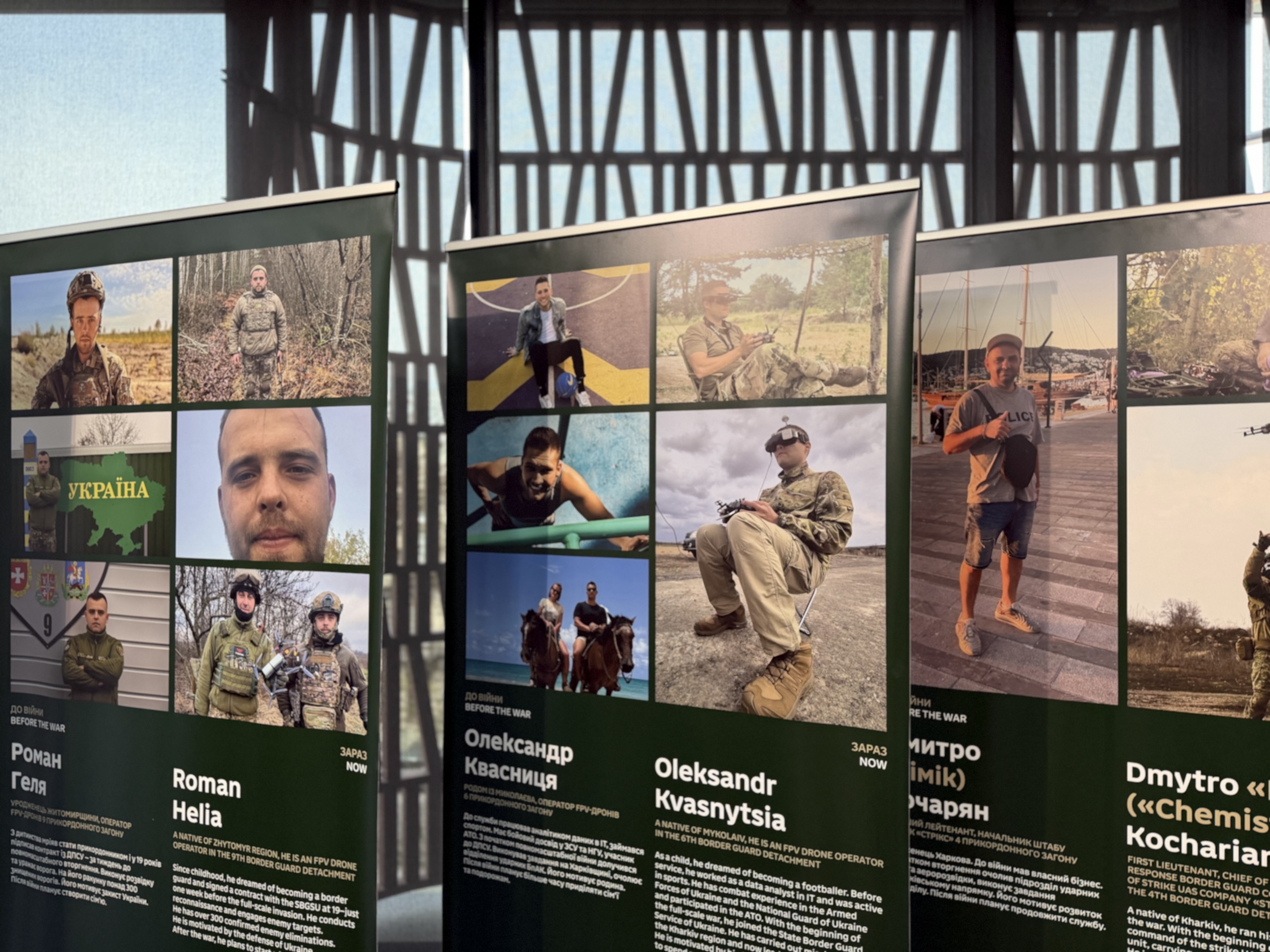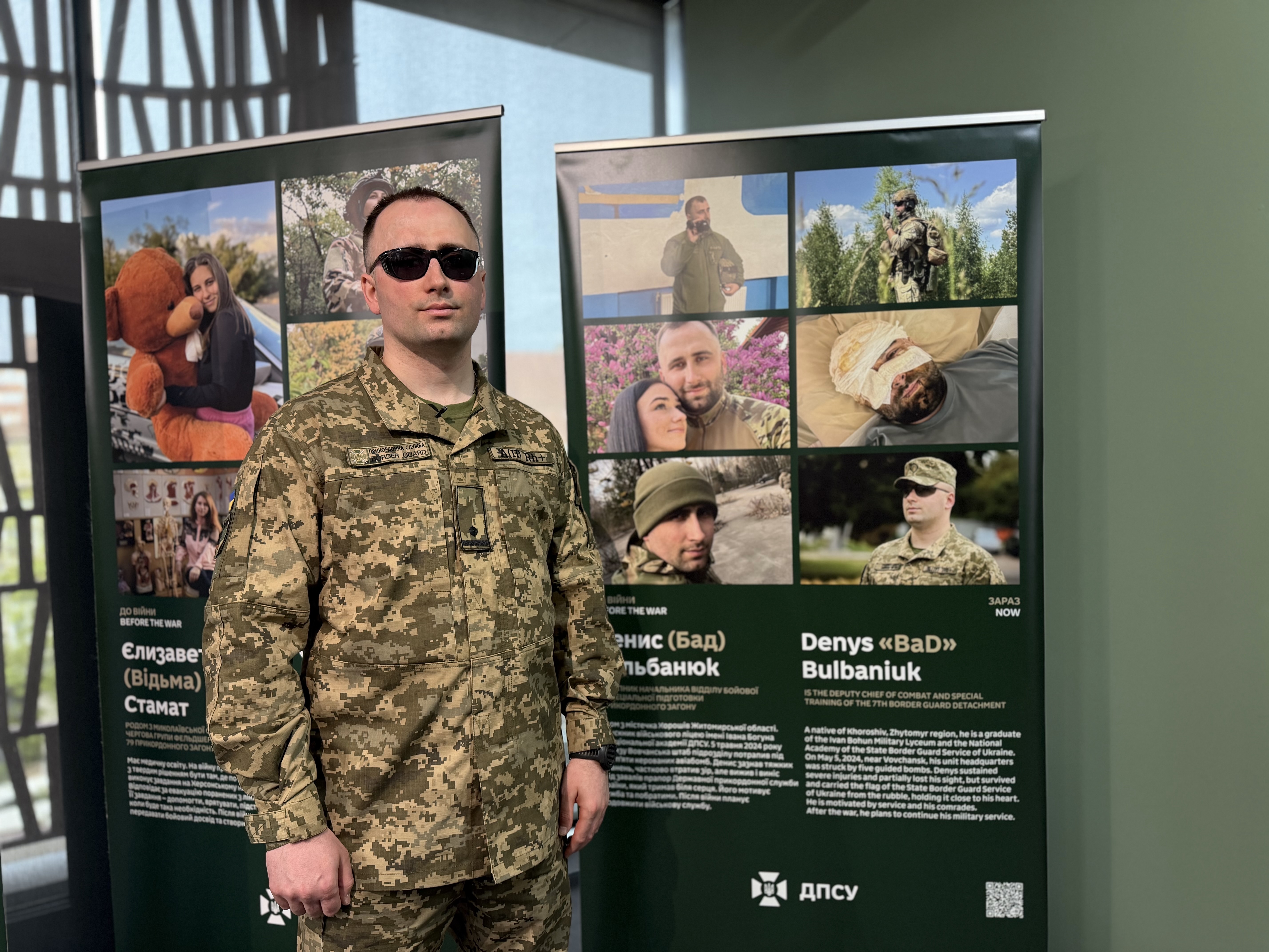 Ті, хто першим зустрічає ворога. У Львові у середу, 15 квітня, в Zenyk Art Gallery відкрили фотовиставку “Обличчя кордону” про історії людей, які стали на захист України у складі Державної прикордонної служби України. Раніше роботи були представлені у кількох обласних центрах Загалом на фотовиставці показано понад 20 робіт. Кожна з них розповідає історію окремих прикордонників, що боронять Україну. У ДПСУ кажуть, що ця виставка про трансформацію відомства та людей, яка показує їх як героїв сьогодення. Раніше роботи були презентовані у Києві та Хмельницькому, зараз їх показали у Львові. “Мета виставки — показати, що історія пишеться зараз. Історія — це тут і зараз, і майбутнє пишеться також зараз. І пишеться не кимось випадковим, а реальними людьми, які сьогодні захищають Україну. Це люди, які залишили своє мирне цивільне життя”, — розповідає речниця 7-го прикордонного Карпатського загону Світлана Бурда. Фотовиставка розповідає про тих, хто попри все вірний присязі. Одним із героїв експозиції є Денис Бульбанюк. У травні 2024 року чоловік під час виконання бойового завдання отримав важке поранення поблизу Вовчанська. Ворог наніс авіаційного удару по штабу прикордонників, Денис вижив, але втратив 80% зору. Попри все, від служби не відмовився, а продовжив служити народу України. Чоловік каже, що ця виставка для нього у першу чергу відкриває побратимів та колег з нового боку, відтак вважає, що побачити її має кожен. “Ці всі долі, які тут представлені — різні, але їх об’єднує те, що вони стали на захист нашої держави. Хтось це зробив після полону, хтось після поранень, а хтось продовжує службу. У мене було важке поранення, я маю інвалідність пов’язану із захистом батьківщини, але я продовжую виконувати свої обов’язки через те, що мені сказали, що я перш за все потрібен”, — розповів Денис Бульбанюк, заступник начальника відділу бойової та спеціальної підготовки штабу 7-го прикордонного Карпатського загону Ще одна із тих, чия історія зображена на фотовиставці є Олена Тітова. Жінка спершу зустріла окупантів в анексованому Криму у 2014-му році. У 2022-му повномасштабне вторгнення почалося для неї у складі прикордонників в Бердянську. Згодом жінка звідти виїхала разом із сім’єю та зуміла вивезти важливі військові документи. “У 2014 році, коли відбулася анексія Криму, я лишилася вірною присязі, тому що в мене є свої моральні етичні принципи. Не рахую себе героїнею. Так сталося, що вибрали мене. Я вважаю, що всі достойні учасники і взагалі дуже багато в нас є військовослужбовців, які мають дуже цікаві історії. Хотілося б, щоб такі виставки проходили частіше, і щоб все населення мало можливість бачити, читати цю інформацію і бачити, хто захищає їх спокійний сон”, — говорить Олена Тітова, начальниця відділу рекрутингу 7-го прикордонного Карпатського загону. Триватиме виставка на третьому поверсі у Zenyk Art Gallery до 19 квітня. Після цього роботи повезуть представити за кордон.