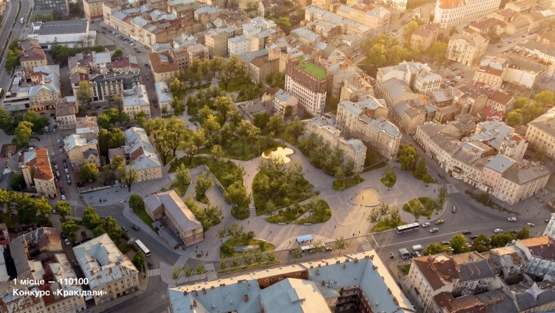 У Львові презентували проєкт нового громадського простору на місці колишнього ринку “Добробут”, що у межах історичної дільниці Кракідали позаду оперного театру. Місто визначило переможця архітектурного конкурсу серед восьми пропозицій — ним стала команда Urbanideas під керівництвом Ольги Криворучко. Про це повідомили у Львівській міській раді 20 квітня. Що передбачає проєкт На території площею близько 1,5 гектара планують: підземний паркінг орієнтовно на 100 місць у межах наявного недобуду (з функцією укриття) відкриту площу з пішохідним фонтаном для ярмарків, виставок і мистецьких подій висадку 245 дерев, нові алеї та об’єднання кількох скверів в єдину зелену зону дитячий майданчик і безбар’єрний доступ для маломобільних людей дощові садки та системи управління дощовими водами велоінфраструктуру, припідняті зупинки й зручне транспортне сполучення У проєкті також промаркували місця історичної спадщини цієї території: синагоги Хасидим Шуль та школи Бет га-Мідраш. Додамо, що архітектори Urbanideas є також авторами проєкту реконструкції найменшої площі у центрі Львова — площі Коліївщини. Цей проєкт потрапив у збірник сучасного ландшафтного дизайну. Також команда стала переможцем всеукраїнського архітектурного конкурсу на проєкт алеї пам’яті загиблих Героїв Національної Гвардії України. Нагадаємо, наприкінці червня на території колишнього ринку “Добробут” компанія “Галінвест” почала зводити основи під нові торгові кіоски. Міськрада вимагала демонтувати незаконні бетонні конструкції, зокрема через порушення будівельних норм та відсутність дозволів. У зв'язку з цим, виконком Львівської міськради ухвалив рішення про демонтаж 11 кіосків, встановлених без дозволу, але власник їх не прибрав. Згодом, Галицька районна адміністрація почала демонтаж незаконних споруд.