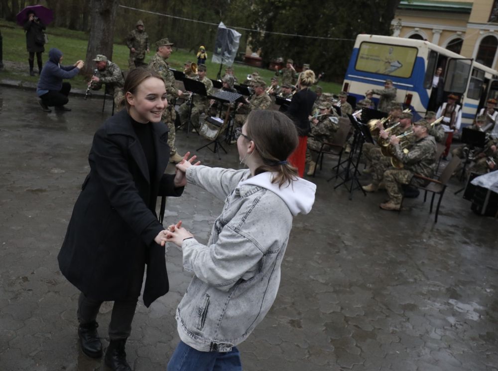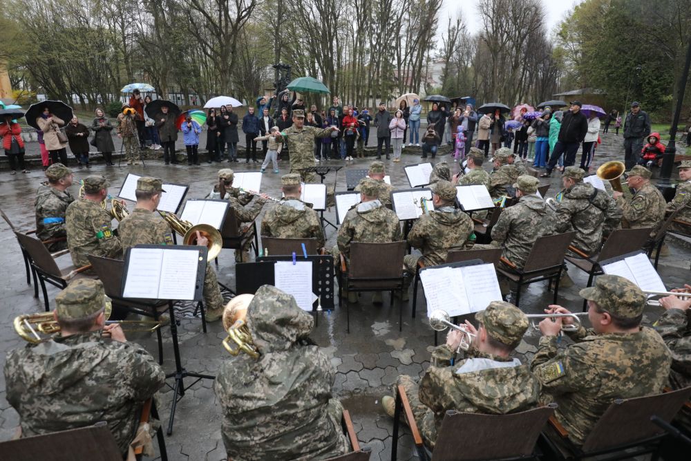 Для вимушених переселенців провели музичний концерт. Його виконав львівський оркестр Академії сухопутних військ. Про це повідомляє Львівська міська рада. "Зараз у нашому місті проживає дуже багато переселенців, з якими ми ділимося своїм теплом і увагою. Великодні свята – це завжди особливий час для ділення радістю, а особливо тепер, у час війни. Саме тому військовий оркестр Національної академії сухопутних військ дарує сьогодні всім українцям свої чудові композиції і своє натхнення, підсилюючи віру у нашу перемогу", – зазначив керівник департаменту гуманітарної політики Львівської міської ради Євген Бойко.. Музичні композиції оркестр Академії сухопутних військ виконав у Стрийському парку – поблизу тимчасового модульного містечка, де мешкають переселенці. Додамо, переселенці на Львівщині не поспішають влаштовуватися на роботу. За словами очільника Львівської області Максима Козицького, вони перебувають у стадії роздумів, чи залишаться тут, чи повернуться у свої домівки.