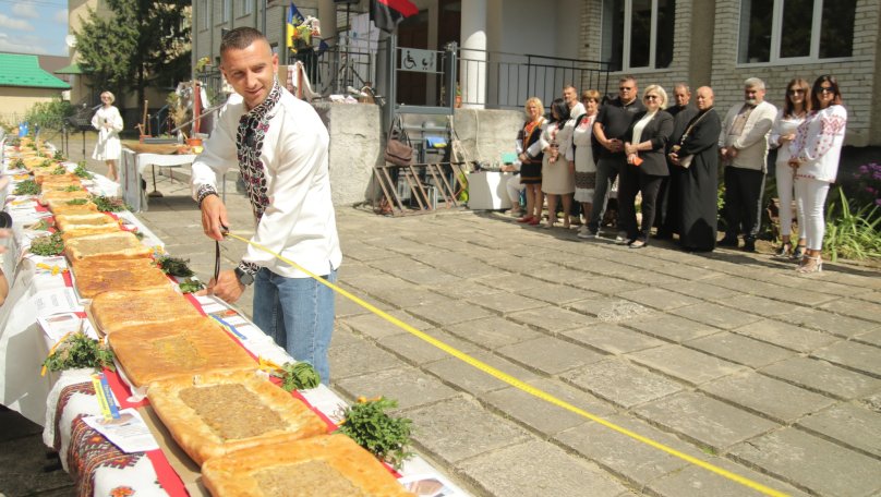 У Миколаєві на Львівщині встановили рекорд України у категорії “Розміри”. Господині спекли найбільший Красівський пиріг Незалежності довжиною 35,6 м та вагою 242 кг. Про це у середу, 20 серпня, повідомили у Стрийській районній державній адміністрації. Пиріг випікали 30 господинь Красівський пиріг Незалежності 30 господинь випікали на території професійного ліцею у Миколаєві. Аби встановити рекорд знадобилося 96 пирогів. “Красівський пиріг - давня традиційна страва з житнього тіста з начинкою із картоплі, гречки та білого сиру. Особливістю пирога є те, що він не накритий зверху тістом. Його рецепт передається з покоління в покоління і згадується у спогадах адвоката та сотника УГА Степана Шухевича”, — розповіли в адміністрації. Програма заходу включала історичну презентацію, ремеслову майстерку з випікання пирога, мистецькі номери та флешмоб у соцмережах. Після фіксації рекорду усі присутні мали можливість скуштувати пиріг. Також частину випічки передали до реабілітаційного центру для військових.