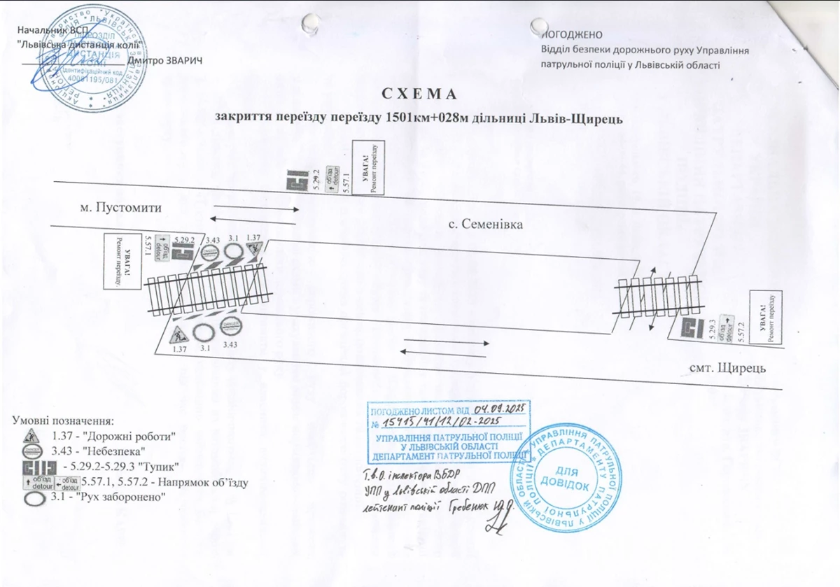 У четвер, 2 жовтня, у Пустомитах на Львівщині ремонтуватимуть залізничний переїзд. Через це рух автотранспорту тимчасово перекриють, об’їзд здійснюватиметься за схемою. Про це повідомили у Львівській ОВА. Актуальна схема об’їзду За словами директора департаменту дорожнього господарства Львівської ОВА Ореста Шуліковського, роботи з поточного утримання колії проводитимуть на залізничному переїзді 1501 км + 028 м на дільниці Львів–Стрий. Переїзд буде закритий для транспорту з 10:00 до 19:00 2 жовтня. Об’їзд автотранспорту організують відповідно до тимчасової схеми закриття переїзду. Мешканців і водіїв просять завчасно планувати маршрут, а пасажирів — врахувати зміни при плануванні поїздок у цьому напрямку. Також нагадується, що для зручності пасажирів працюють офіційні канали у Telegram, Viber та WhatsApp, де публікують актуальну інформацію про затримки, зміни графіків і тимчасові скасування приміських поїздів. Актуальний розклад приміських поїздів доступний за посиланням. Нагадаємо, у серпні залізничний переїзд у Пустомитах вже перекривали кілька разів через капітальний ремонт колії. Зокрема, переїзд був закритий 13 серпня, 19 серпня (на три дні) та 27 серпня — усі рази на дільниці Львів–Стрий.