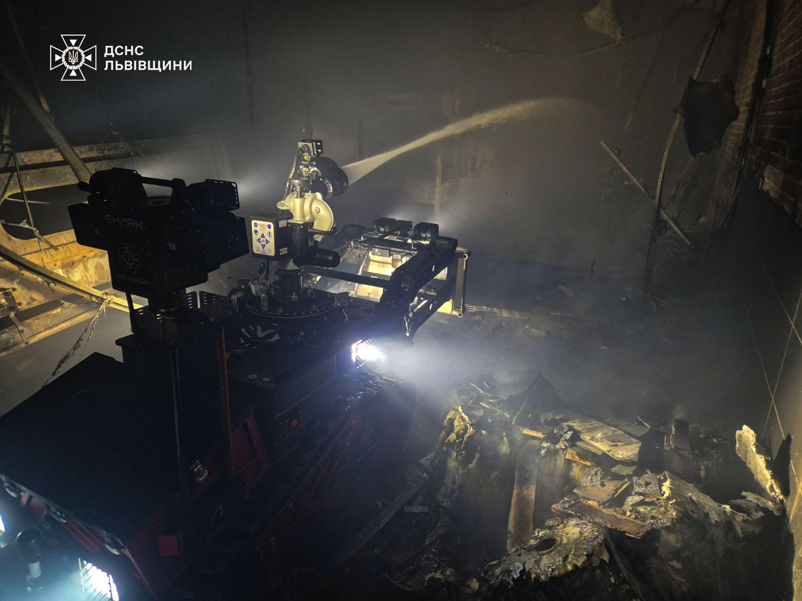 У Городку рятувальники ліквідували масштабну пожежу в складській будівлі, що спалахнула надвечір 21 листопада. До гасіння залучили 45 рятувальників, 11 спецавто. Про це повідомили у ДСНС Львівщини. Пожежу гасили майже за п’ять годин За даними рятувальників, повідомлення про пожежу надійшло їм о 17:37 — горіла одноповерхова складська будівля на вулиці Львівській, проте що саме зберігалося у приміщенні наразі невідомо. Коли перші підрозділи прибули на місце, складська будівля вже була повністю охоплена вогнем. Через сильне задимлення та високу температуру вогнеборці працювали у спеціальних апаратах захисту. Для проведення робіт також залучили роботизовану техніку. Пожежу вдалося локалізувати о 19:18, а повністю погасити — о 22:16. До гасіння долучили курсантів Львівського державного університету безпеки життєдіяльності та два пожежні роботи від ДСНС і ЛДУБЖД. Унаслідок займання ніхто не постраждав. Причини пожежі встановлюють фахівці.