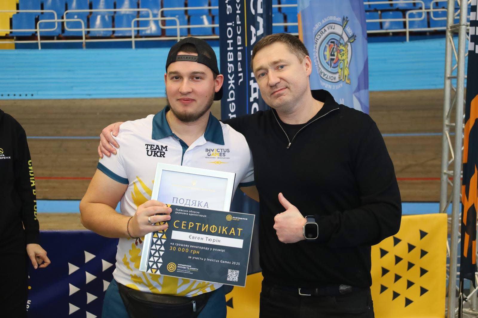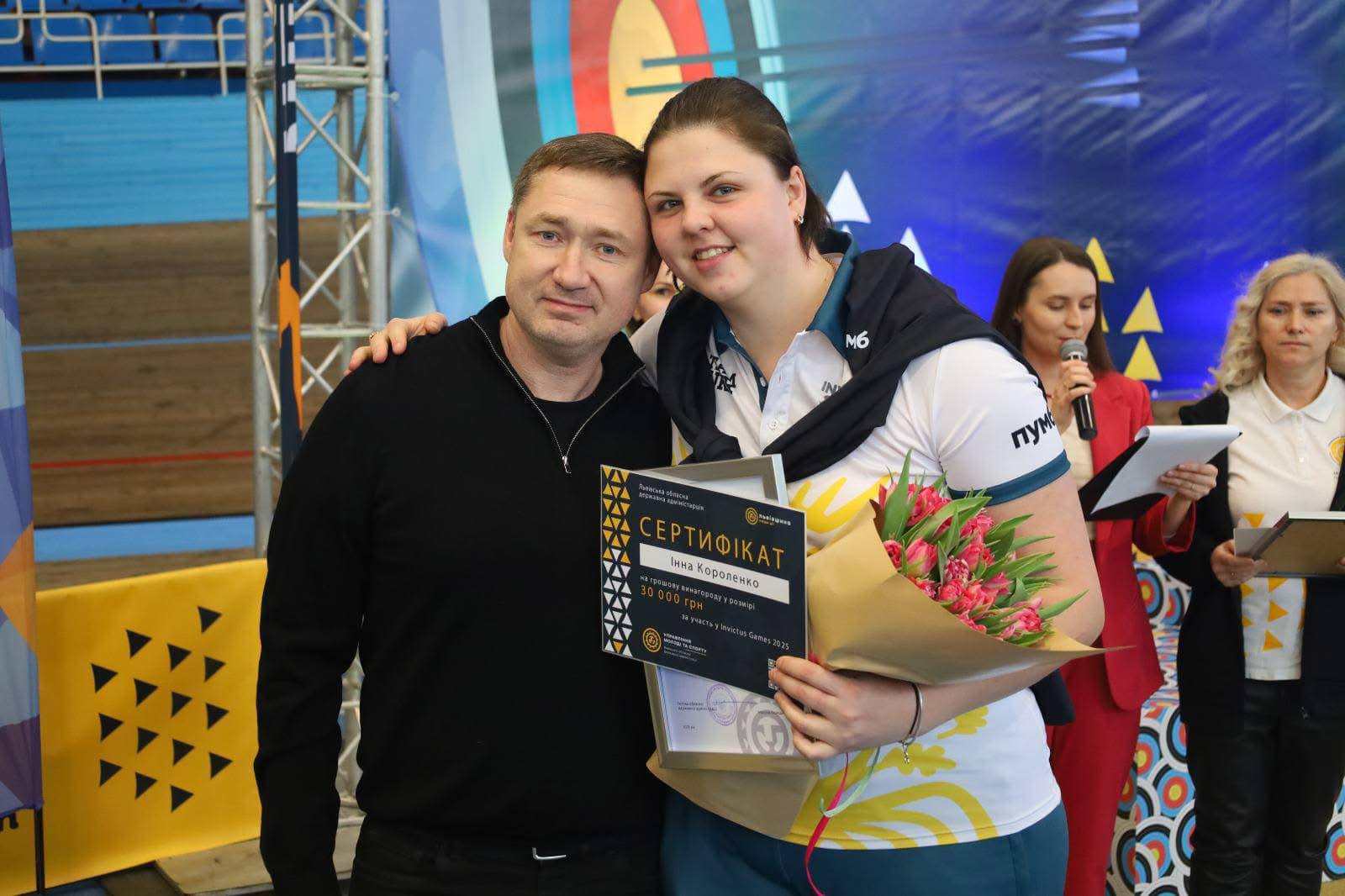 Президент України Володимир Зеленський вручив державні нагороди членам національної збірної України — учасникам міжнародних спортивних змагань «Ігри Нескорених». Серед нагороджених є представники Львівщини — військові, ветерани, медики та спортсмени. Про це 14 січня повідомив очільник Львівської ОВА Максим Козицький. «Ці нагороди – не лише про спорт. Вони про шлях через війну до відновлення. Про мужність залишатися сильними. Про тих, хто з честю представляє Україну у світі. Пишаємось кожним та кожною з вас. Дякуємо за службу. За приклад. За Україну», — зазначив Козицький. Хто отримав державні нагороди Орденом «За заслуги» ІІІ ступеня нагородили ветерана та підполковника ЗСУ Володимира Геру. Він є срібним призером «Ігор Нескорених» у штовханні ядра та метанні диска, а також брав участь у змаганнях з плавання, де посів четверте місце на дистанції 50 метрів на спині. Цією ж нагородою відзначили ветерана ЗСУ Павла Лучківа — чемпіона зі стрільби з блочного лука. Він здобув золоту медаль на «Іграх Нескорених» у Дюссельдорфі та представляв Україну у баскетболі на візках, регбі на візках і настільному тенісі. З кінця 2023 року Павло працює у Львівському регіональному центрі «Інваспорт» і є координатором обласного проєкту «Ліга Нескорених», який допомагає військовим і ветеранам у фізичній та психологічній реабілітації через спорт. Орден «За мужність» ІІІ ступеня отримав військовослужбовець Національної гвардії України Дмитро Козак — учасник «Ігор Нескорених» 2023 року. Він змагався у легкій атлетиці та настільному тенісі. Також цією нагородою відзначили Інну Короленко — молодшу сержантку та колишню бойову медикиню 206-го батальйону тероборони ЗСУ. Вона брала участь у «Іграх Нескорених» 2025 року, де посіла п’яте місце у змаганнях з гірських лиж, а також виступала у плаванні. Орден «За мужність» ІІІ ступеня вручили й старшому сержанту Нацгвардії України Євгену Тюріну — учаснику «Ігор Нескорених» 2025 року. Він змагався у сноубордингу, скелетоні та керлінгу, посівши восьме місце у сноубордингу.