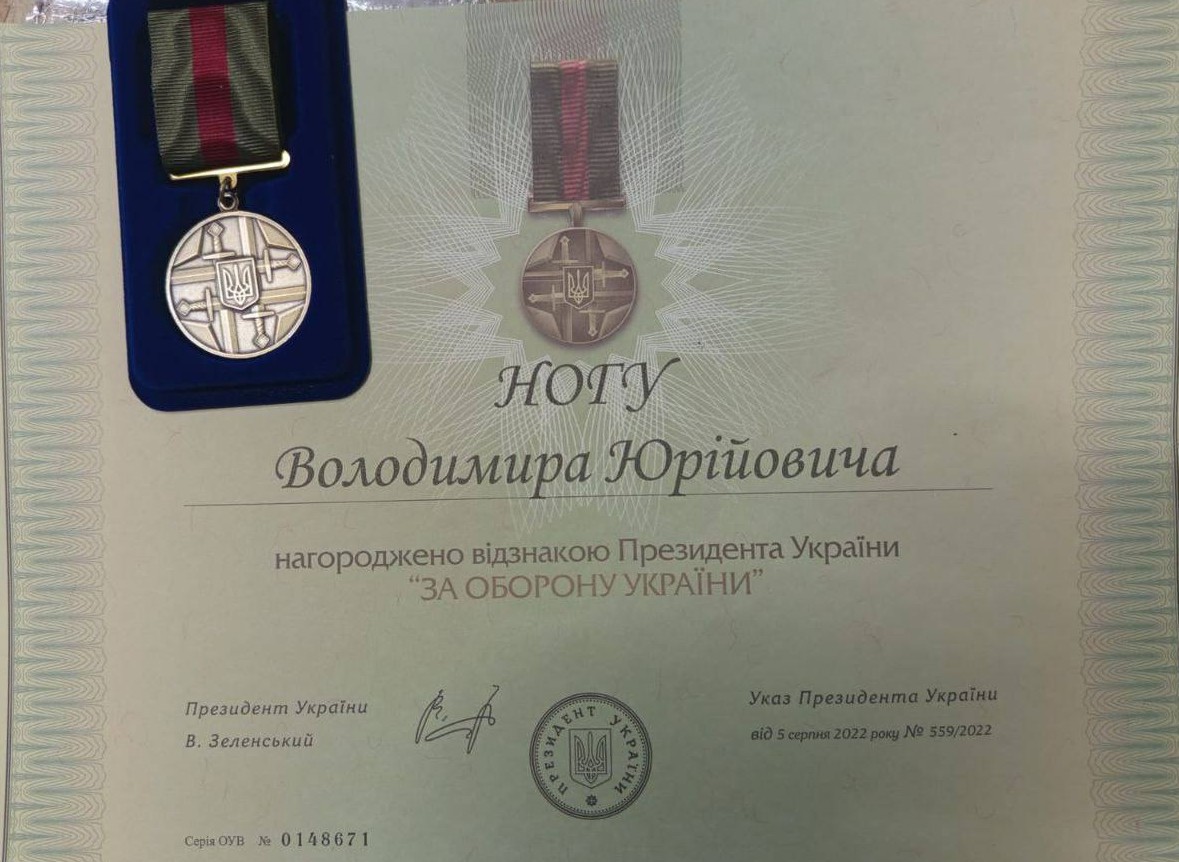 Воїна зі Львівщини Івана Ногу нагородили двома почесними відзнаками за сумлінну службу та оборону України. Про це у четвер, 12 лютого, повідомили у Славській селищній раді. Чоловік служить молодшим сержантом Воїн Іван Нога служить молодшим сержантом у 425-му полку “Скеля”. Він родом з Орова, але його сім’я проживає у Славську. Які відзнаки отримав військовий: відзнаку Головнокомандувача Збройних Сил України “За сумлінну службу”; нагрудний знак Президента “За оборону України”. До слова, військового Олега Лесіва зі Стрийщини відзначили високими державними нагородами. Молодший сержант Олег Лесів отримав нагрудний знак “Золотий хрест” та медаль “За оборону України”.