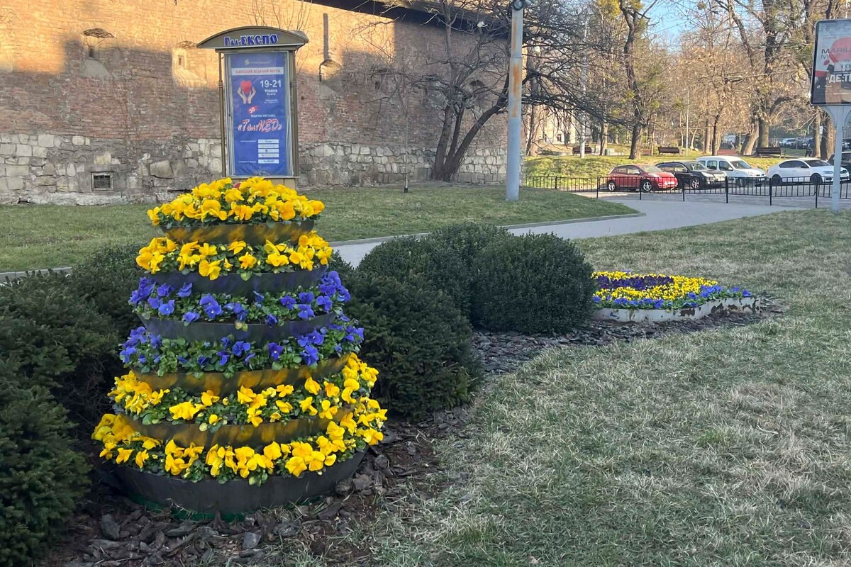 У центрі Львова висадили перші квіткові композиції. Зокрема, на площі Митній оновили “Квітковий годинник” і облаштували клумби поруч, використавши тисячі квітів. Про це повідомили у Львівській міській раді. Скільки квітів висадили На самому квітковому годиннику висадили 1408 віол, ще 1200 квітів розмістили на прилеглих клумбах. Загалом локацію прикрасили 2608 рослинами. Частину робіт профінансували меценати. Квіти висаджені секторами, що формують синьо-жовтий візерунок, який символізує державний прапор України. Де ще висадять квіти До великодніх свят у місті планують облаштувати нові квіткові композиції біля пам’ятника Митрополиту Андрею Шептицькому, а також на декоративній конструкції у формі піраміди біля церкви святого Юра. У міськраді також закликають підприємців долучатися до озеленення Львова та висаджувати квіти на прилеглих територіях. Квітковий годинник на площі Митній встановили у 2010 році. Його механізм важить понад 300 кілограмів, а подібна конструкція прикрашала цю локацію ще понад пів століття тому.