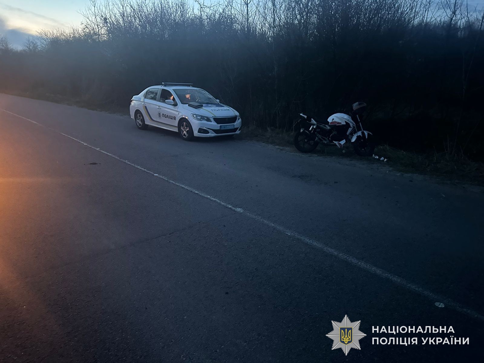 У неділю, 12 квітня, на Дрогобиччині п’яний 18-річний мотоцикліст не впорався з керуванням, з’їхав з дороги та впав. Унаслідок аварії він і його пасажир травмувалися. Про це повідомили у поліції Львівщини. Водія затримали Аварія сталася близько 19:45 в одному із сіл Дрогобицького району. За попередніми даними, водій мотоцикла Geon ON-250 не впорався з керуванням, виїхав за межі дороги та впав. Унаслідок ДТП травмувалися сам водій і його 18-річний пасажир — обох госпіталізували. Також встановлено, що мотоцикліст керував транспортним засобом, перебуваючи у стані алкогольного сп’яніння. Правоохоронці відкрили кримінальне провадження. Йдеться про порушення правил дорожнього руху у стані сп’яніння. Санкція статті передбачає до трьох років позбавлення волі, а також заборону керувати транспортними засобами на строк від трьох до п’яти років. Мотоцикліста затримали. Найближчим часом суд обере йому запобіжний захід. Наразі триває встановлення всіх обставин події.