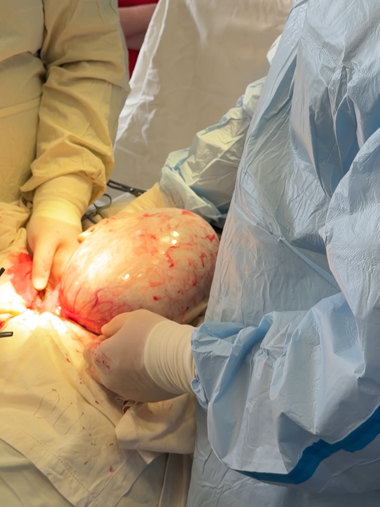 Медики в Самборі прооперували пацієнтку з кістою яєчника розміром з баскетбольний м’яч. Жінці видалили новоутворення разом із маткою та додатками. Про це повідомили у Самбірській центральній лікарні 23 квітня. Кіста була діаметром понад 20 сантиметрів Як зазначили у лікарні, пацієнтка звернулася зі скаргами на збільшення живота та дискомфорт. Після проведення УЗД та МРТ-обстежень фахівці виявили кісту яєчника діаметром близько 22 см. Утворення заважало нормальній роботі внутрішніх органів. “Хірургічне втручання розпочали з діагностичної лапароскопії, щоб переконатися у відсутності поширення патології на сусідні органи. Після підтвердження доброякісного характеру процесу, лікарі провели лапаротомію та видалили новоутворення єдиним блоком разом із маткою та додатками”, — зазначили лікарі. Операція пройшла успішно, пацієнтка уже одужує. У лікарні нагадують, що регулярні профілактичні огляди дозволяють виявити проблему на ранніх стадіях.