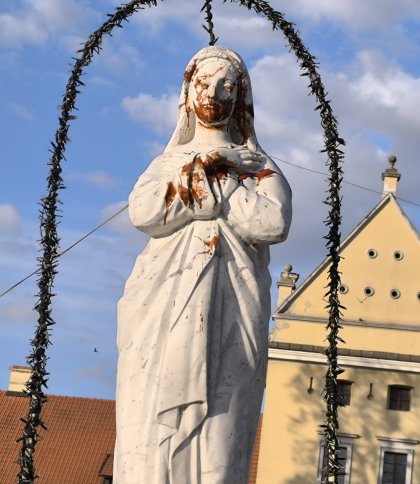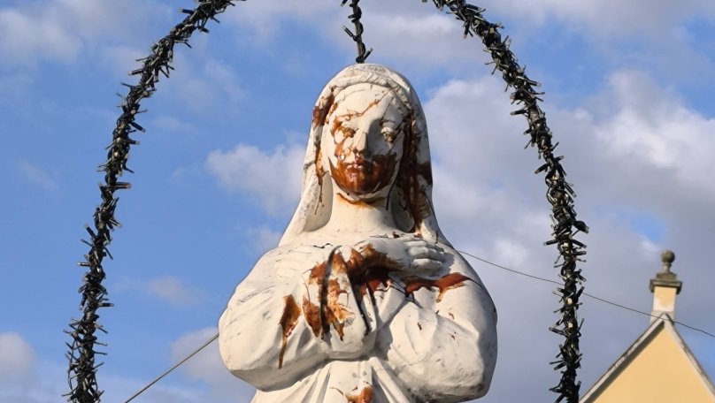 У Жовкві правоохоронці встановили зловмисника, який осквернив скульптуру Матері Божої. Ним виявився 33-річний місцевий мешканець. Про це повідомили у поліції Львівської області. Напередодні, 28 квітня, фігуру Божої Матері на площі Вічевій облили кетчупом. Після цього поліція почала розшукувати зловмисника. Ним виявився місцевий мешканець 1993 року народження, який пояснив свої дії хуліганськими мотивами. Фігуранту загрожує до п’яти років обмеження волі За фактом поліцейські відкрили кримінальне провадження за ч.1 ст.296 Кримінального кодексу України — хуліганство. Санкція статті передбачає штраф, арешт або обмеження волі на строк до п’яти років. Наразі триває досудове розслідування.