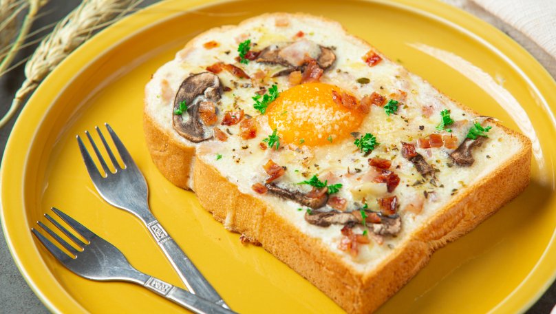 У швидкому ритмі буднів знайти час на нормальний сніданок буває непросто, адже потрібно зібратися, спланувати день і паралельно щось з’їсти. Тому прості та швидкі рецепти стають справжнім порятунком. Пропонуємо універсальний варіант, який однаково підходить і для робочих ранків, і для спокійних вихідних – тост із яйцем, грибами та дрібно нарізаною шинкою. На його приготування піде менше ніж 10 хвилин, а смак буде не гіршим, ніж у кафе. Поради з приготування тосту з яйцем Для цього рецепта краще обирати вчорашній хліб, адже він краще тримає форму та не розмокає. Не готуйте швидкий сніданок на дуже сильному вогні, оскільки тост може згоріти, а всередині залишитися сирим. Інгредієнти для швидкого сніданку Для однієї порції вам знадобиться: яйце – 1 шт.; тостовий хліб – 1 шт.; печериці – 1-2 шт.; шинка або ковбаса – 20-30 г; твердий сир або крем-сир – 40 гр; трішки вершкового масла або олії; сіль і перець на власний смак; зелень – для подачі. Ці продукти є практично в кожному холодильнику, тому такий варіант легко готувати навіть тоді, коли заздалегіть забули придбати продукти. Як приготувати швидкий сніданок: покроковий рецепт Крок 1. Підготуйте основу. Поставте пательню на середній вогонь і додайте трохи масла. Тим часом намастіть хліб тонким шаром крем-сиру або натріть твердий сир на поверхню. Це допоможе інгредієнтам триматися на тості та додасть кремової структури. Крок 2. Додайте начинку. Наріжте печериці тонкими скибками, а шинку подрібніть на дрібні кубики. Розкладіть гриби та шматочки шинки по поверхні хліба. Крок 3. Зробіть заглиблення для яйця. Ложкою трохи продавіть середину тосту, щоб утворилася невелика ямка. Обережно вбийте туди яйце, намагаючись не пошкодити жовток. Крок 4. Підсмажте тост. Перекладіть тост на пательню. Готуйте під кришкою 5-7 хвилин на середньому або слабкому вогні. Хліб стане золотистим, білок схопиться, а жовток залишиться ніжним усередині. Крок 5. Подавайте відразу. Посипте готовий тост зеленню або твердим сиром. Найсмачніше їсти сніданок одразу, поки він хрусткий, а аромат грибів і шинки максимально насичений. Пам’ятайте, що сніданок є дуже важливим прийомом їжі і його краще не пропускати. Простий тост з яйцем є чудовим прикладом того, що смачну та поживну страву можна приготувати всього за кілька хвилин. До того ж такий варіант не набридне, адже кожного разу можна змінювати начинку.