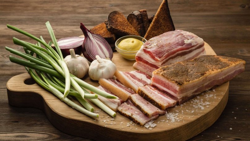 Сало в банках – один із найзручніших способів підготуватися до зими й завжди мати під рукою домашню закуску. Цей спосіб зберігання дозволяє не лише продовжити термін придатності продукту, а й зберегти його смак та аромат аж до весни. Сало виходить соковитим, ароматним і завжди готовим до подачі – достатньо лише нарізати тонкими шматочками та подати до хліба чи гарячої страви. У цьому матеріалі ділимося двома покроковими рецептами сала на зиму та порадами з приготування. Поради з приготування сала Для засолювання можна обирати як сало з проріззю (з прошарком м’яса), так і класичне – рівне, біле, без м’ясних волокон. Обидва варіанти будуть смачними, але є один важливий нюанс: товщина шматка не повинна перевищувати 4-5 см. Саме така товщина дозволяє салу рівномірно просолитися та не втратити ніжність під час зберігання. Класичний рецепт сала з часником і спеціями Інгредієнти: 500 г сала з проріззю; 2,5 ст. л. солі; 4 зубчики часнику; 5 гілочок петрушки; 5 лаврових листків; 1 ч. л. орегано. Покроковий рецепт сала з часником і спеціями Крок 1. У шматку сала зробіть невеликі надрізи ножем. Часник очистьте, наріжте пластинками та вставте в ці надрізи. Крок 2. Лаврові листки покришіть руками, змішайте їх з орегано. Чим дрібніші частинки – тим ароматніше буде сало. Крок 3. Спершу обкачайте шматок у солі (це найважливіший етап, адже саме сіль відповідає за тривале зберігання). Після цього натріть його сумішшю спецій та часнику. Крок 4. Дрібно наріжте петрушку та притрусіть нею сало. Зелень надає продукту легкий свіжий аромат. Крок 5. Перекладіть шматок у чисту банку або контейнер із кришкою. Щільно закрийте та залиште в холодильнику на 2-3 дні. За цей час сало добре просолиться та стане більш щільним. Коли сало досягне потрібної консистенції, його можна перекласти у морозилку або залишити в банці просто у прохолодному приміщенні. Рецепт сала з паприкою Інгредієнти: 500 г сала; 200 г солі; 150 г паприки. Покрокове приготування сала з паприкою Крок 1. Обсушіть шматок паперовим рушником, щоб спеції добре прилипали. Крок 2. Ретельно обваляйте сало в солі, після чого рясно посипте паприкою з усіх боків. Не шкодуйте спеції. Крок 3. Перекладіть сало в контейнер або банку, закрийте кришкою та поставте у холодильник на 2-3 дні. За цей час воно стане щільнішим і повністю просолиться. Крок 4. Дістаньте сало: якщо воно тверде – значить, усе вдалося. Зайву сіль можна легко струсити або зішкребти ножем. Готове сало можна тримати у холодильнику або в морозилці.