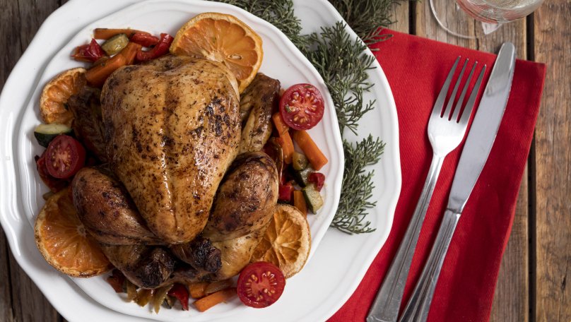 Запечена курка є саме тією стравою, яка ніколи не втрачає актуальності. Її готують і на великі свята, і для затишної сімейної вечері. Вона має рум’яну золотаву скоринку та неймовірно ніжне м’ясо, яке буквально тане в роті. Особливо вдалим варіантом є курка, запечена з мандаринами, адже цитрусові додають м’ясу легкої кислинки, соковитості та святкового аромату. У цьому матеріалі ділимося простим рецептом запеченої курки з мандаринами. Корисні поради з приготування запеченої курки Секрет соковитої запеченої курки – правильна підготовка. Якщо у вас є час, найкраще замочити тушку на ніч у солоній воді. Для цього розчиніть 60 грамів солі в одному літрі холодної води та повністю занурте курку. Такий спосіб дозволяє м’ясу рівномірно просолитися і стати значно м’якшим після запікання. Якщо ж часу обмаль, є швидка альтернатива. Перед маринуванням змастіть курку олією та мандариновим соком, злегка втираючи їх у шкіру. Такий “масаж” допоможе спеціям і соку краще проникнути в м’ясо. Під час приготування уважно стежте за куркою. Якщо бачите, що шкірка починає підгоряти, а середина ще не готова, накрийте тушку фольгою. Це дозволить рівномірно допекти м’ясо, не пересушивши його. Інгредієнти для запеченої курки з мандаринами Для приготування знадобляться прості продукти: курка – 1 шт; гілочки чебрецю – 2 шт; мандарини – 4 шт; сіль – ½ ч. л.; олія – 2 ст.л.; мед – 1 ст.л. Покроковий рецепт приготування запеченої курки з мандаринами Крок 1. Три мандарини почистьте від шкірки, а з одного з них вичавіть свіжий сік. Курку ретельно промийте зовні та всередині, після чого добре обсушіть паперовими рушниками. Крок 2. Натріть курку сіллю з усіх боків. Усередину тушки покладіть два очищені мандарини, один мандарин зі шкіркою та гілочки чебрецю. Крок 3. Полийте курку мандариновим соком і олією, після чого поставте в холодильник маринуватися щонайменше на одну годину. Крок 4. Розігрійте духовку до 180 градусів. Крок 5. Застеліть деко пергаментом та викладіть замариновану курку. Запікайте її протягом півтори-двох годин, залежно від розміру тушки. За десять хвилин до готовності змастіть курку медом – це додасть їй апетитного блиску та карамельної скоринки. Готова запечена курка з мандаринами стане справжньою окрасою столу й неодмінно сподобається всій родині. Така страва поєднує простоту, аромат і домашній затишок, який хочеться відчути знову і знову.