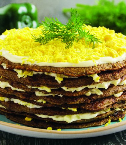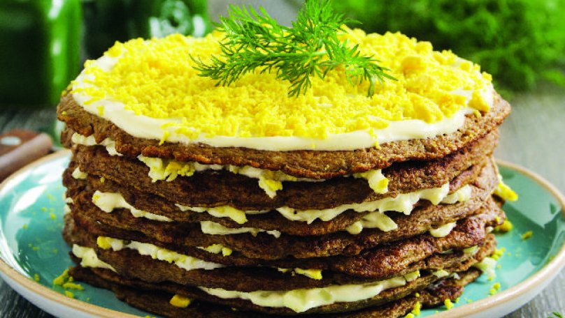 Печінковий торт – це страва, яку полюбляють і на свята, і в будні. Ніжні млинці з курячої печінки з прошарком смаженої моркви та цибулі під майонезним соусом не залишають байдужим жодного гостя. Пропонуємо детальний рецепт печінкового торта, який легко приготувати навіть новачку на кухні. Поради з приготування Щоб торт вийшов ідеальним: смажте цибулю до золотистого кольору, моркву тушкуйте на маленькому вогні; промазуйте торти тонким шаром майонезу до країв, щоб не було сухих місць; використовуйте помірну кількість овочевої начинки, інакше торт буде занадто важким; млинці можна спекти за день до застілля, а промазати соусом в день подачі. Інгредієнти для печінкового торта печінка куряча – 600 г; яйця – 2 шт.; пшеничне борошно – 150 г; молоко – 200 мл; часник – 4 зубчики; цибуля – 2 шт.; морква – 2 шт.; зелень – 1 пучок; рослинна олія – 4 ст.л.; майонез – 200 г. Як приготувати печінковий торт: покроковий рецепт Крок 1. Щоб млинці з курячої печінки вийшли ніжними, печінку слід очистити від плівок та зайвого жиру, обережно видалити жовчний міхур, якщо він присутній. Потім промийте її під проточною водою і дайте стекти зайвій рідині. Крок 2. Печінку потрібно пропустити через блендер або м’ясорубку до однорідної консистенції. Крок 3. В окремій мисці збийте яйця, додайте сіль, перець і молоко, поступово всипте борошно, ретельно перемішуючи, щоб не було грудочок. Поєднайте цю суміш із печінкою та знову збийте до однорідності. Щоб млинці не прилипали до сковороди, додайте трохи рослинної олії. Крок 4. Смажте млинці на розігрітій сковороді на середньому вогні. Перевертаючи їх, переконайтеся, що низ добре підсмажився, інакше млинець може розірватися. Готові млинці викладайте на тарілку й залиште охолонути. Крок 5. Для начинки очистіть цибулю та наріжте її середніми шматочками, моркву натріть на тертці. Обсмажте цибулю до золотистого кольору, додайте моркву, трохи олії та тушкуйте до м’якості. Потім овочі охолодіть і відтисніть зайву олію. Крок 6. Зробіть майонезний соус із подрібненої зелені, часнику та майонезу. Для складання торта млинець промажте соусом, викладіть шар овочів і накрийте наступним млинцем. Повторюйте шари до кінця. Верхній млинець і боки торта також змастіть соусом, прикрасьте натертим жовтком та зеленню. Готовий печінковий торт покладіть у холодильник мінімум на 2 години, щоб соус добре просочив млинці. Подавайте нарізаним трикутними шматочками, і він точно стане улюбленою закускою на святковому столі.
