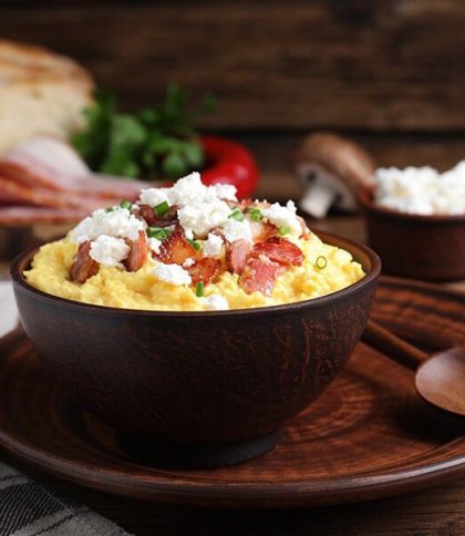 Банош (або бануш) – це не просто кукурудзяна каша. Це символ закарпатської та гуцульської кухні, страва з характером і правилами. Її потрібно готували лише на один раз, адже після розігрівання вона стає не такою смачною. У цьому матеріалі ділимося перевірений та смачним рецептом баношу, а також порадами з приготування цієї легендарної страви. Що потрібно знати перед тим, як готувати банош Перед тим як готувати банош, варто звернути увагу на кілька деталей. Для цієї страви найкраще підійде кукурудзяна крупа середнього помелу, адже вона швидко розварюється та дає гладку, кремову текстуру. Сметана бажано домашня, жирна, без кислинки. Обирайте масло лише високої жирності, адже саме воно відповідає за вершковий посмак. Сир можна обирати на власний смак. Традиційно використовують бринзу, але якщо хочеться експериментів, можна спробувати сир, що тягнеться, або навіть із блакитною пліснявою. Інгредієнти для баношу Для приготування знадобляться: склянка сметани; склянка молока; 90 грамів кукурудзяної крупи; чайна ложка цукру; 20 грамів масла; 200 грамів сала; сіль, перець і бринза до смаку. Як готувати банош: покроковий рецепт Крок 1. Очистіть сало від шкірки та наріжте його невеликими кубиками розміром близько одного сантиметра. Викладіть шматочки на добре розігріту суху сковорідку й на повільному вогні витопіть до апетитних золотистих шкварок. Готові шкварки відкладіть убік. Крок 2. У каструлю з товстим дном влийте молоко, додайте сметану та вершкове масло. Поставте на слабкий вогонь, всипте сіль і цукор, після чого обережно доведіть суміш до кипіння. Крок 3. Найважливіший етап – додавання кукурудзяної крупи. Всипайте її поступово, невеликими порціями, постійно ретельно помішуючи лопаткою. Завдяки цьому банош матиме однорідну, ніжну консистенцію без грудочок. Крок 4. Продовжуйте готувати банош на мінімальному вогні приблизно пів години, постійно помішуючи, щоб маса не приставала до дна. У процесі каша має загуснути, стати м’якою та еластичною, легко відокремлюючись від стінок посуду. Якщо кукурудзяна крупа залишається твердою, влийте трохи молока й варіть далі до повної готовності. Правильно зварений банош має бути настільки щільним, щоб його можна було наколоти виделкою. Готовий банош перекладіть у тарілку, зверху рясно притрусіть подрібненою бринзою та доповніть ще гарячими та хрумкими шкварками.