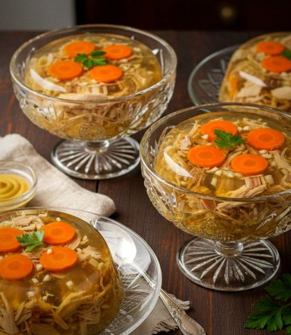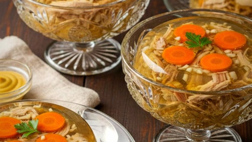 Холодець зазвичай сприймають як сезонну страву, без якої складно уявити родинні застілля в Україні. Його готують завчасно, довго томлять на слабкому вогні й терпляче чекають, поки насичений бульйон добре застигне. Традиційний рецепт холодцю передбачає використання м’яса, багатого на природний желатин, адже саме він забезпечує правильну текстуру готової страви. Розповідаємо, як приготувати домашній холодець, щоб він вийшов прозорим, насиченим і добре тримав форму без желатину. Як зробити холодець прозорим Щоб холодець рецепт вийшов ідеальним, варто дотримуватися кількох правил: не допускайте сильного кипіння під час варіння; обов’язково замочуйте м’ясо перед приготуванням; зайвий жир знімайте після охолодження бульйону; використовуйте повільне томління, а не швидке варіння. Інгредієнти для домашнього холодцю Щоб приготувати насичений і ароматний холодець, знадобляться: півень вагою близько 2 кг; свиняча рулька; два свинячі копита; дві морквини; дві цибулини; лавровий лист; чорний і запашний перець; сіль на власний смак; головка часнику; приблизно 3,5 літра води. Як варити холодець: покроковий рецепт Крок 1. Щоб холодець рецепт дав прозорий бульйон, потрібно правильно підготувати м’ясо. Спочатку копита ретельно очистіть під гарячою водою, зіскрібаючи шкіру ножем. Рульку також почистіть і розріжте. Півня розрубайте, добре промийте і видаліть внутрішні органи. Рекомендується замочити м’ясо в холодній воді мінімум на 6 годин, а краще – на ніч. Це допоможе прибрати залишки крові й зробить бульйон чистим та прозорим. Крок 2. Складіть усе м’ясо у велику каструлю, залийте холодною водою й доведіть до кипіння. Після цього воду потрібно злити, щоб позбутися зайвих домішок. Крок 3. Знову залийте м’ясо холодною водою та доведіть до кипіння на середньому вогні. Важливо не допустити активного кипіння. На дуже слабкому вогні варіть приблизно 6 годин. Крок 4. Після тривалого варіння додайте очищену моркву, надрізану цибулю, лавровий лист, перець і сіль. Варіть ще близько декількох годин. Саме тривале повільне томління робить бульйон насиченим Крок 5. Готове м’ясо дістаньте, остудіть і розберіть на шматочки. Викладіть його у тарілки або форми. У бульйон додайте подрібнений часник, за потреби досоліть і процідіть. Потім обережно залийте м’ясо бульйоном. Крок 6. Залиште холодець застигати в прохолодному місці або холодильнику до повного застигання.