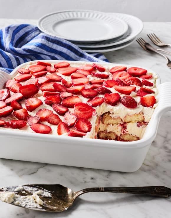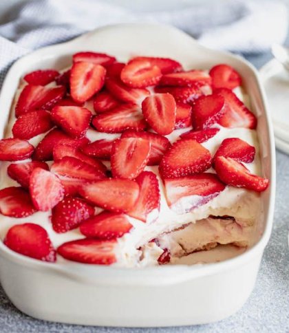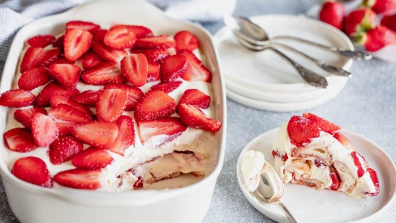 Класичний рецепт тирамісу давно став гастрономічною візитівкою Італії. Проте кулінарія – це завжди про експеримент. Якщо хочеться освіжити знайомий смак і додати яскравих фарб, спробуйте новий рецепт полуничного тирамісу. Він готується швидко, має ефектний вигляд та ідеально підходить для сезону ягід. Цей рецепт поєднує ніжний крем із маскарпоне, повітряні вершки та насичений полуничний соус. У результаті маємо легкий десерт із виразною ягідною ноткою. Головне – правильно підготувати полуницю: її потрібно повністю розморозити та добре просушити. Інгредієнти Для приготування основи вам знадобляться: сир маскарпоне – 250 г; вершки 33% – 200 мл; цукрова пудра – 70 г; ванільний цукор – на власний смак; печиво савоярді – 200 г. Для приготування полуничного соусу потрібно: полуниця заморожена – 350 г; цукор – 2 ст. л.; лимонний сік — 1 ч. л. (за бажанням) Для прошарку візьміть 100 г свіжої полуниці, якщо її немає, можете використати розморожену. Як приготувати полуничне тирамісу: покроковий рецепт Крок 1. Перед початком приготування полуницю потрібно повністю розморозити. Це важливо, адже зайва волога може зіпсувати текстуру десерту. Після розморожування викладіть ягоди на паперові рушники та обережно промокніть їх. Крок 2. Далі наріжте полуницю невеликими шматочками та перекладіть у сотейник. Додайте 2 столові ложки цукру. Якщо хочете легку кислинку, можете додати чайну ложку лимонного соку. У цьому рецепті лимонний сік не є обов’язковим, але він підсилює ягідний смак. Крок 3. Поставте сотейник на середній вогонь. За 3-5 хвилин полуниця почне активно виділяти сік, а цукор розчиниться. Зніміть з вогню та подрібніть масу: можна легко потовкти виделкою, якщо хочете шматочки ягід, або пробити блендером до однорідної текстури. Готовий соус обов’язково повністю охолодіть. Крок 4. Охолоджені вершки влийте в глибоку миску та збивайте міксером на середній швидкості. Збивайте до густої, стійкої консистенції. Вершки повинні тримати форму, але не перетворитися на масло. Крок 5. В окремій мисці змішайте сир маскарпоне з цукровою пудрою. Робіть це акуратно, лопаткою або міксером на мінімальній швидкості. За бажанням додайте ванільний цукор. Крок 6. Далі поступово з’єднайте маскарпоне зі збитими вершками. Додавайте вершки частинами та обережно перемішуйте лопаткою рухами знизу вгору. Крок 7. Савоярді швидко вмочуйте в охолоджений полуничний соус. Не тримайте печиво довго, достатньо буквально 1-2 секунд з кожного боку. Воно має просочитися, але не розмокнути. Крок 8. Викладіть перший шар савоярді на дно форми. Зверху рівномірно розподіліть частину крему. Далі додайте шар нарізаної свіжої полуниці. Повторіть шари: савоярді → крем → полуниця. Завершальний шар має бути кремовим. Акуратно вирівняйте поверхню лопаткою. За бажанням прикрасьте десерт шматочками свіжої полуниці або тонким шаром полуничного соусу.