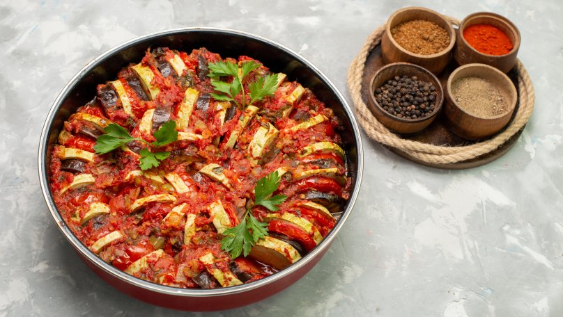 Рататуй – це більше, ніж просто овочева запіканка. Традиційна страва родом із сонячного Провансу, зокрема з регіону навколо Ніцца, давно стала популярною далеко за межами Франції. Рататуй цінують за простоту приготування, користь для здоров’я та універсальність подачі. Цей класичний рецепт рататую ідеально підійде для вегетаріанців, тих, хто дотримується посту, а також для всіх, хто хоче додати у щоденне меню більше овочів. Його можна подавати як самостійну страву або як гарнір до м’яса чи риби. Інгредієнти для класичного рататую Для овочевої основи: кабачки – 1-2 шт.; помідори – 4-5 шт.; баклажани – 2 шт.; гострий червоний перець (за бажанням) – 1/4-1/2 шт.; зелень петрушки – 2-3 гілочки; часник – 1-4 зубчики; оливкова олія – 3 ст. л.; сіль, мелений перець – на власний смак. Для томатного соусу: томати у власному соку або свіжі сезонні – 400 г; ріпчаста цибуля (за бажанням) – 1 шт.; болгарський перець – 1 шт.; оливкова олія – 2-3 ст. л.; цукор – 0,5 ч. л. (за бажанням); сіль, перець – на власний смак. Як приготувати рататуй: покроковий рецепт Крок 1. Баклажани потрібно вимити та нарізати тонкими кружальцями товщиною 2-3 мм. Посипте сіллю та залиште на 20-30 хвилин, щоб позбутися зайвої гіркоти. Після цього ретельно промийте під проточною водою та обсушіть паперовим рушником. Крок 2. Кабачки вимийте й наріжте такими ж тонкими кружальцями. Важливо, щоб овочі були приблизно однакової товщини, адже тоді рататуй пропечеться рівномірно. Крок 3. Помідори наріжте кружальцями або півколами, залежно від їхнього розміру. Якщо томати дуже соковиті, зайвий сік можна злегка злити. Крок 4. Цибулю очистіть та дрібно наріжте. Болгарський перець помийте, видаліть насіння й наріжте маленькими кубиками. Крок 5. На помідорах зробіть хрестоподібний надріз з боку плодоніжки, обдайте окропом, зніміть шкірку та подрібніть у блендері або наріжте дрібними кубиками. Крок 6. У розігріту сковороду з оливковою олією викладіть цибулю, трохи посоліть і обсмажуйте до м’якості. Додайте болгарський перець і готуйте ще 5 хвилин, помішуючи. Крок 7. До сковороди додайте подрібнені томати, посоліть, поперчіть, за бажанням додайте трохи цукру для балансу смаку. Тушкуйте на слабкому вогні 10-15 хвилин, поки соус не стане густішим. За бажанням можна додати рубану зелень базиліка або петрушки. Крок 8. На дно форми для запікання викладіть половину томатного соусу. Далі починайте викладати овочі вертикальними рядами, чергуючи кружальце помідора, баклажана та кабачка. Повторюйте, поки форма не заповниться. Саме так створюється фірмова “спіраль” або акуратні ряди Крок 9. Гострий перець наріжте дрібними кубиками. Петрушку та часник дрібно порубайте й змішайте разом. Посоліть овочі, посипте зеленню з часником і перцем, зверху скропіть оливковою олією. Крок 10. Накрийте форму пергаментним папером або фольгою. Запікайте рататуй у розігрітій до 180°C духовці близько 1 години. Після запікання дайте страві настоятися 10 хвилин. Подавайте, поливши рештою томатного соусу.