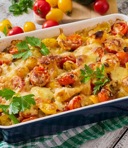 Коли обмаль часу на приготування або на порозі раптом з’являються гості, на допомогу приходять універсальні страви, такі як овочева запіканка.Вона готується швидко, не потребує складних інгредієнтів і легко адаптується під те, що є в холодильнику. До того ж це поживна, ароматна і дуже домашня страва, яка смакує і гарячою, і трохи охолодженою. Розповідаємо, як приготувати овочеву запіканку покроково та без зайвих клопотів. Інгредієнти для овочевої запіканки (на 4 порції) Для приготування знадобляться прості сезонні продукти: баклажани – 2 шт.; червоний болгарський перець – 2 шт.; помідори – 4 шт.; часник – 4 зубчики; шпинат – 300 г; петрушка – 1 гілочка; базилік – 1 гілочка; яйця – 4 шт.; грецький йогурт – 4 ст. ложки; жовта ріпчаста цибуля – половина; панірувальні сухарі – 2 ст. ложки; оливкова олія – 4 ст. ложки; сіль і перець – на власний смак; твердий сир – на власний смак. Як приготувати овочеву запіканку: покроковий рецепт Крок 1. Спочатку потрібно підготувати баклажани. Наріжте їх кружальцями або довгими скибками, злегка посоліть і залиште приблизно на 20 хвилин. Це допоможе прибрати характерну гіркоту та зробить текстуру м’якшою після запікання. Крок 2. Поки баклажани “відпочивають”, можна нарізати перець смужками, помідори – товстими кружальцями, а цибулю – тонкими півкільцями. Часник дрібно подрібніть, зелень посічіть ножем. Крок 3. Розігрійте духовку до 200°C. Форму для запікання змастіть двома ложками оливкової олії. Крок 4. У форму для випікання викладіть перший шар з баклажанів, зверху покладіть смужки червоного перцю. Полийте рештою оливкової олії. Запікайте приблизно 20 хвилин. За цей час овочі стануть м’якими та ароматними, а баклажани – ніжними всередині. Крок 5. Поки овочі запікаються, приготуйте суміш, яка зробить запіканку ніжною та ситною. Для цього в мисці змішайте яйця, грецький йогурт або сметану, панірувальні сухарі, сіль і перець. Крок 6. Окремо з’єднайте шпинат, цибулю, половину зелені та подрібнений часник. Саме ця суміш додасть страві свіжого аромату і соковитості. Крок 7. Дістаньте форму з духовки. На підпечені овочі викладіть кружальця помідорів. Поверх них рівномірно розподіліть шпинатну суміш. Залийте все яєчно-йогуртовою масою. Вона повинна заповнити проміжки між овочами. Поверніть форму в духовку ще приблизно на 20 хвилин, аби яйця приготувалися і з’явилася рум’яна скоринка. Перед подачею посипте рештою зелені. За бажанням додайте натертий твердий сир, він розплавиться і створить апетитну скоринку.