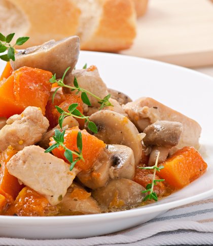 Навіть із базових продуктів можна створити ситну й запашну страву. Якщо маєте трохи вільного часу, варто приготувати тушковану картоплю з куркою та грибами, яка ідеально підійде і для обіду, і для вечері. Ця става є більш легкої версією традиційного м’ясного рагу: курятина робить її менш жирною, але водночас поживною. У цьому матеріалі ділимося спростим рецептом тушкованої курки з картоплею та овочами. Інгредієнти для тушкованої картоплі з куркою та грибами Для приготування страви на 4 порції вам знадобиться: куряче філе – 500 г; картопля – 400 г; морква – 1 шт.; печериці – 200 г (4 шт.); ріпчаста цибуля – 1 шт.; овочевий бульйон – 500 мл; соняшникова олія – 30 мл; чебрець – на власний смак; сіль і чорний перець – на власний смак. Покроковий рецепт приготування Крок 1. Спочатку куряче філе потрібно добре промити та обсушити паперовими рушниками. Наріжте його рівними кубиками приблизно по 2 см, оскільки так м’ясо рівномірно приготується і залишиться соковитим. Крок 2. Картоплю очистьте, промийте та також наріжте кубиками такого ж розміру. Це важливо, щоб усі інгредієнти готувалися одночасно. Крок 3. Моркву та цибулю очистьте й наріжте дрібними кубиками. Крок 4. Печериці обережно протріть вологим кухонним рушником. Великі гриби наріжте на 4–5 частин, а дрібні можна залишити цілими. Крок 5. У кастрюлі з товстим дном або глибокій сковороді розігрійте невелику кількість олії. Спочатку обсмажте цибулю та моркву до м’якості, вони повинні стати ароматними і злегка золотистими. Крок 6. Додайте куряче філе та гриби. Готуйте на сильному вогні кілька хвилин, постійно помішуючи. М’ясо має злегка підрум’янитися, саме це допоможе зберегти соки всередині. Крок 7. Додайте нарізану картоплю. Перемішайте всі інгредієнти та готуйте ще кілька хвилин. Картопля повинна трохи “схопитися”, але не повністю приготуватися. Крок 8. Влийте в каструлю чисту воду так, щоб він покрив інгредієнти. Зменшіть вогонь до середнього, накрийте кришкою і тушкуйте приблизно 30 хвилин. Час від часу перемішуйте страву, щоб нічого не пригоріло. За цей час курка стане ніжною, а картопля – м’якою та просочиться ароматами бульйону й овочів. Крок 9. Наприкінці приготування відкрийте кришку, додайте кілька листочків чебрецю. Посоліть і поперчіть за смаком. Дайте страві ще кілька хвилин потомитися без кришки, і можна подавати. Ця страва чудово смакує самостійно, але за бажанням її можна доповнити свіжим хлібом або легким овочевим салатом. Найкраще подавати тушковану картоплю гарячою, окільки тоді вона залишаєтья максимально ароматною і соковитою.