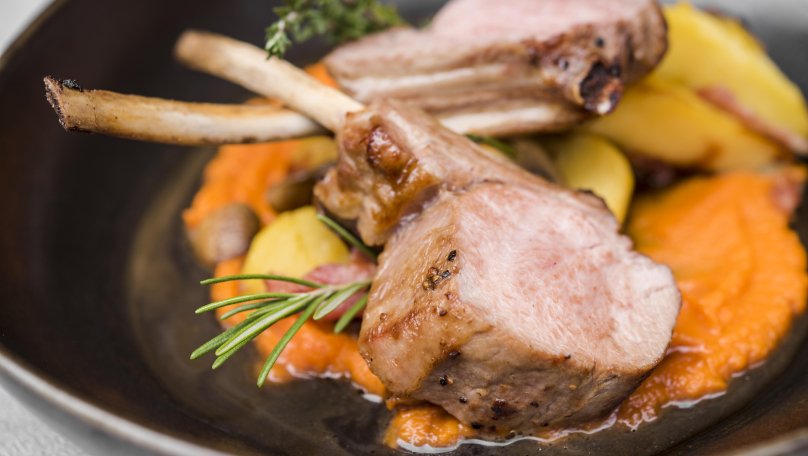 Ароматні реберця ягняти з рум’яною скоринкою, ніжним м’ясом і яскравою овочевою “подушкою” можуть стати чудовим варіантом смачної вечері. Тоді як овочева “подушка” підкреслюють смак м’яса. У цьому матеріалі розповідаємо простий рецепт реберець ягняти з овочами. Секрети ідеального результату Хоча приготування реберець не потребує особливого кулінарного досвіду, варто дотримуватися кількох простих порад, щоб уже з першої спроби отримати ідеальний результат: нарізайте овочі максимально тонко; не перевантажуйте м’ясо спеціями, адже ягня має природно насичений смак; для ще глибшого смаку можна додати краплю бальзамічного соусу перед подачею. Інгредієнти Для реберець: 600-800 г реберець ягняти; 2 зубчики часнику; гілочка розмарину; сіль, чорний перець; 2 ст. л. оливкової олії; 30 г вершкового масла. Для овочевої подушки: 1 великий батат або гарбуз; 2 моркви; 2-3 картоплини; 1 буряк (за бажанням, для кольору); 2 ст. л. оливкової олії; сіль, перець; щіпка чебрецю або розмарину. Покроковий рецепт реберець ягняти на овочевій подушці Крок 1. Підготовка м’яса. Дістаньте реберця з холодильника за 20-30 хвилин до приготування. Натріть їх сіллю, перцем, подрібненим часником і розмарином. Залиште маринуватися. Цього часу буде достатньо, щоб спеції розкрили аромат. Крок 2. Обсмаження до ідеальної скоринки. На добре розігрітій сковорідці з оливковою олією обсмажте реберця по 3-4 хвилини з кожного боку до золотистої скоринки. Наприкінці додайте вершкове масло і поливайте м’ясо зверху – це класичний прийом, який робить ягнятину ще соковитішою. Крок 3. Доведення в духовці. Перекладіть реберця у форму для запікання, додайте трохи води або бульйону, накрийте фольгою та поставте в духовку при 180°C на 15–20 хвилин. Крок 4. Приготування овочевої “подушки” Овочі очистіть і наріжте тонкими слайсами. Це можна зробити ножем або за допомогою овочечистки чи мандоліни. Важливо: слайси мають бути тонкими, майже прозорими. Тоді вони швидко приготуються і матимуть ніжну текстуру. Викладіть овочі шарами або хаотично у форму. Полийте все оливковою олією, посоліть, поперчіть, додайте трави. Запікайте при 180°C приблизно 20-25 хвилин, поки овочі стануть м’якими, але не втратять форму. Вони мають бути ніжними, з легко підрум’яненими краями. Крок 5. Формування подачі. На тарілку викладіть овочеву “подушку”. Зверху розмістіть реберця ягняти. Додайте трохи соку, який утворився під час запікання, і прикрасьте гілочкою розмарину.
