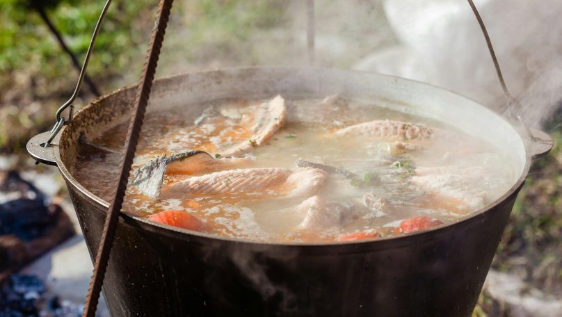 З настанням весни та перших по-справжньому теплих днів дедалі більше людей починають планувати відпочинок на природі, виїзди до річки та сімейні пікніки. Саме в цей період особливо актуальними стають рецепти страв, які можна приготувати просто неба. Однією з найулюбленіших і найатмосферніших страв такого формату є рибна юшка. Класичний рецепт передбачає використання кількох видів риби, обов’язково свіжої, а також простих овочів і спецій, які лише підкреслюють природний смак бульйону, не перевантажуючи його зайвими інгредієнтами. Сьогодні ж особливу популярність отримала юшка з червоної риби – це сучасна інтерпретація традиційної страви. Саме таким рецептом поділимося у цьому матеріалі. Інгредієнти для юшки (казан 5-6 літрів) Для приготування ароматної юшки знадобляться прості продукти: червона риба (хребти, голови, стейки) – 1 кг; картопля – 4-5 шт.; морква – 1-2 шт.; цибуля – 1-2 шт.; пшоно – 2-3 ст. л.; лавровий лист, перець горошком; сіль, свіжа зелень (кріп або петрушка); секретний інгредієнт: 50 г горілки або вуглинка з багаття для прозорості бульйону. Як приготувати юшку: покроковий рецепт Крок 1. У великий казан налийте воду та доведіть до кипіння. Додайте рибні хребти, голови без зябер, цілу цибулину та моркву. Варіть на повільному вогні 15-20 хвилин. У процесі обов’язково знімайте піну, адже саме це зробить бульйон прозорим і чистим за смаком. Крок 2. Після першого етапу дістаньте рибу та овочі. Бульйон можна процідити через сито, щоб позбутися дрібних частинок. Потім поверніть його назад у казан. Саме на цьому етапі формується основа майбутньої юшки. Крок 3. Додайте в киплячий бульйон нарізану великими шматками картоплю, моркву та добре промите пшоно. Варіть приблизно 10-15 хвилин до напівготовності картоплі. Пшоно додає легку густину та домашній смак страві. Крок 4. Наступним кроком покладіть шматочки червоної риби. Додайте лавровий лист і перець горошком. Варіть ще 7-10 хвилин, не допускаючи сильного кипіння, щоб риба залишилася ніжною. Крок 5. За кілька хвилин до завершення приготування додайте сіль і подрібнену зелень. За бажанням влийте 50 г горілки або киньте в казан розпечену вуглинку – це старий рибацький секрет, який робить смак більш глибоким і чистим. Після цього зніміть юшку з вогню та дайте їй настоятися 10-15 хвилин. Юшку подавати варто гарячою, бажано просто з казана. Ідеальним доповненням стане свіжий хліб або підсмажені грінки.