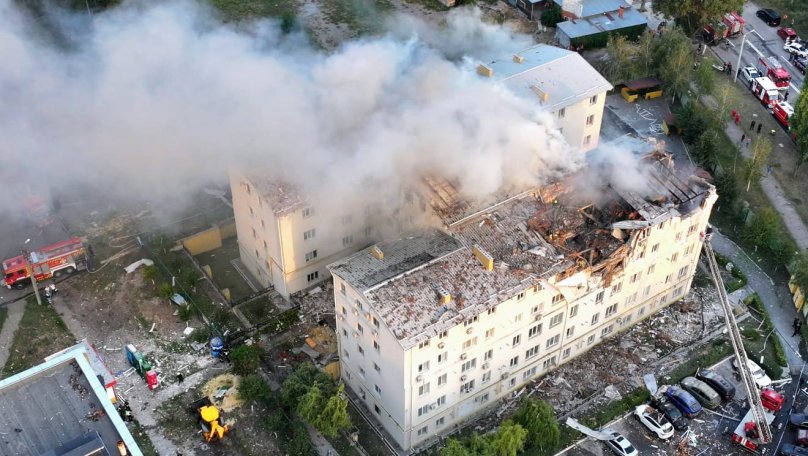Близько 04:50, 18 серпня, Росія атакувала Харків ударними дронами. Один з них влучив у п'ятиповерховий житловий будинок. Внаслідок удару обвалилось кілька поверхів і спалахнула пожежа. За інформацією міського голови Харкова Ігоря Терехова, станом на 8:47 ранку — пʼятеро загиблих, серед них півторарічна дитина і 16-річний хлопець. Їхні тіла знайшли під завалами. Згодом Ігор Терехов повідомив, що станом на 11:24 відомо про сімох загиблих. Через удар безпілотника виникла пожежа на декількох поверхах Голова Харківської ОВА Олег Синєгубов повідомив, що 18 людей зазнали поранень. За даними рятувальників, внаслідок влучань у п’ятиповерхівку сталися руйнації та пожежі на першому, третьому та п’ятому поверхах на загальній площі 900 м кв. Згодом кількість постраждалих зросла до 20. У місті оголосили жалобу. Загалом у місті через ранковий удар пошкоджено 19 багатоквартирних будинків, 25 автомобілів. Станом на 9:17 ранку аварійно-рятувальні роботи тривають. Під завалами можуть бути ще люди.