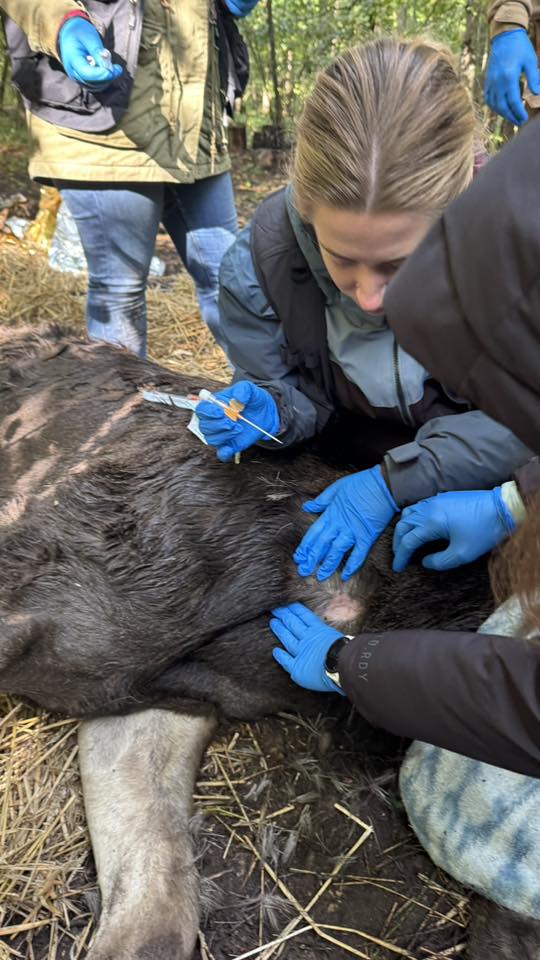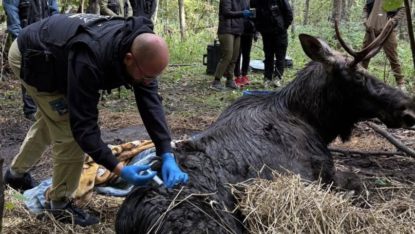 Працівники львівського шелтеру для тварин “Домівка врятованих тварин” поїхали рятувати лося у Рівненській області, який від неділі лежить у болоті. Причини, чому тварина опинилася у такому стані, поки невідомі. Про це у середу, 1 жовтня, повідомив директор притулку для тварин Орест Залипський. Стан тварини важкий За словами Ореста Залипського, працівники взяли зі собою портативний рентген, аби з’ясувати чи є у лося переломи. “Вчора пізно ввечері надійшов важкий виклик про те, що в лісі у Рівненськай області від неділі лежить у болоті лось. Що трапилось — невідомо. Командою з 9 домівчан ми на місці від 7 ранку”, — повідомив він. За його словами, стан лося критичний: тварина знесилена та зневоднена. Її седували, зробили рентген — переломів не виявлено. Зараз ветеринари проводять внутрішньовенні інфузії, щоб стабілізувати стан. Рятівники поки чекають на дозвіл перевезти тварину.